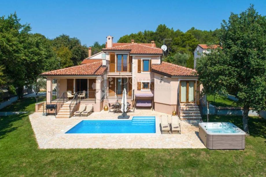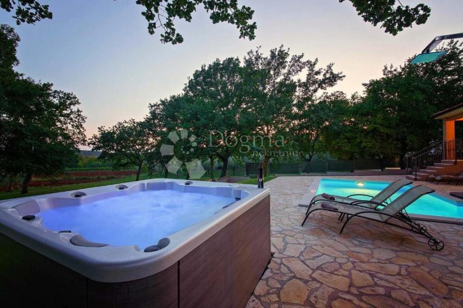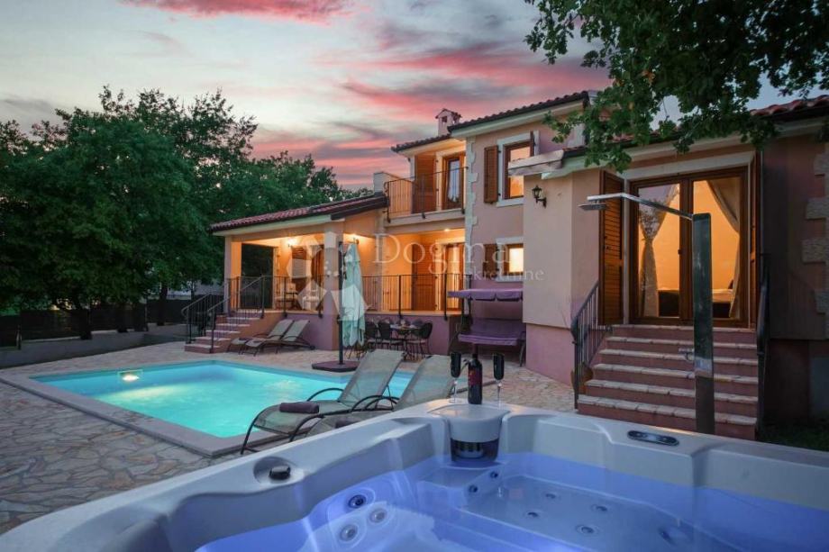 Potpuno uređena i održavana okućnica nudi potpunu privatnost, sadrži 3 parkirna mjesta, dječje igralište, whirlpool za 5 osoba, roštinj i vanjsku blagovaonu ti uz plažu bazena površine 24m2.