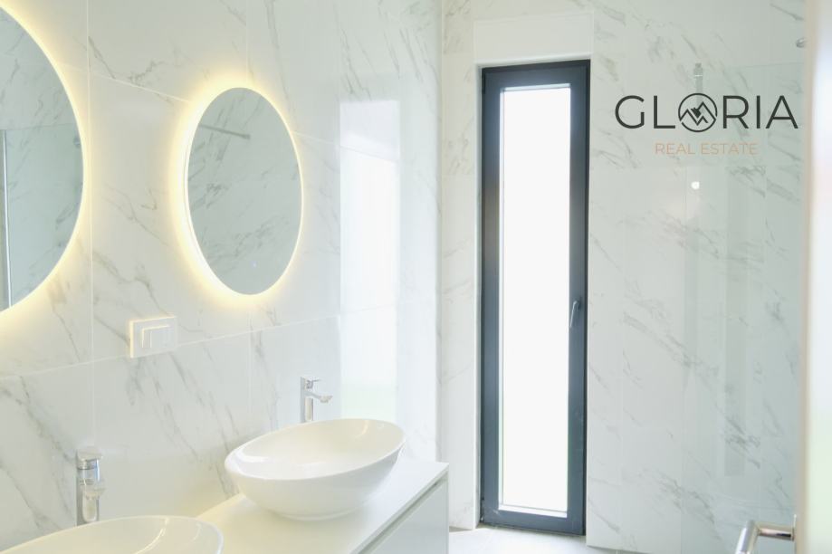 Raspored prostorija pažljivo je osmišljen i uključuje: predprostor (2,03 m2), prostrani dnevni boravak s kuhinjom i blagovaonicom (38,37 m2), dva hodnika (1,68 m2 i 2,10 m2), garderobu (5,28 m2), odvojeni WC (2,94 m2), dvije kupaonice (5,58 m2 i 6,48 m2), te tri spavaće sobe (15,23 m2, 13,76 m2 i 14,19 m2). Dodatnu vrijednost donose lođa (9,08 m2) i vrt (84,32 m2), idealni za opuštanje i uživanje na otvorenom.