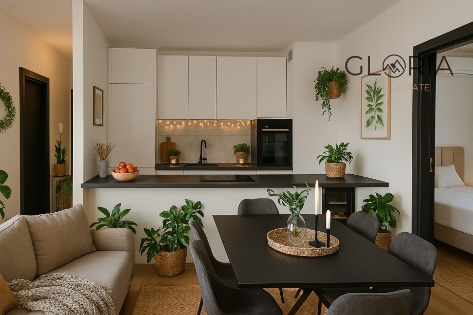Stan se ističe izuzetnom mirnom lokacijom te blizinom prirode, pružajući ugodan i opuštajući ambijent idealan za svakodnevni život. Posebnu vrijednost daje vrlo sunčana pozicija i lijep pogled na more, što čini ovaj stan savršenim izborom za one koji traže luksuz i opuštanje uz obalu.