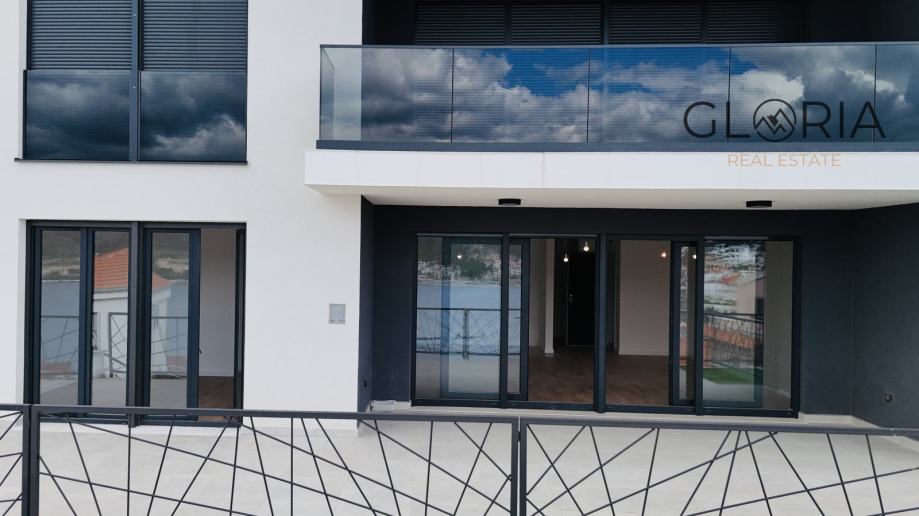 Na prodaju je prostran 3-sobni stan koji se nalazi u prizemlju moderne zgrade izgrađene 2025. godine, smještene u Marini, uz more.