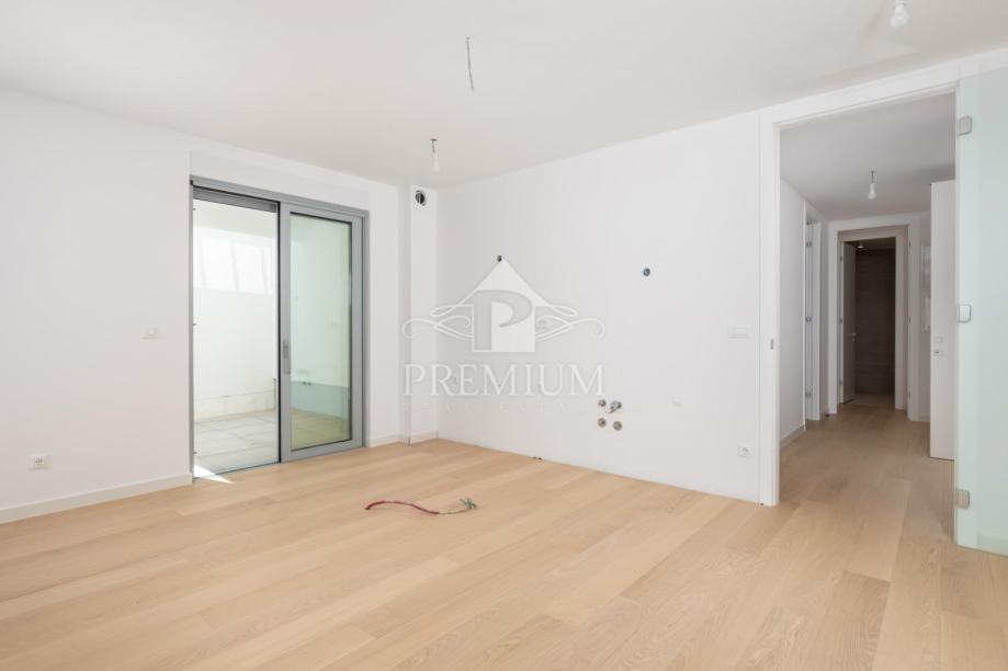 Čista stambena površina iznosi 103,34 m2, dok je sveukupna površina stana izražena s koeficijentima 112,10 m2. U vlasništvu je jedno parkirno mjesto u garaži 15,15 m2 te spremište površine 2,35 m2.