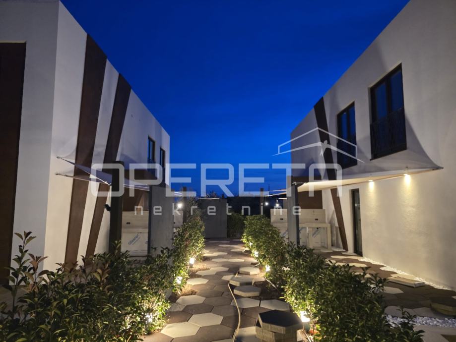 Ova inovativno osmišljena nekretnina razvijena je s jasnim ciljem energetske učinkovitosti i zelene gradnje. Spojena je sa suvremenim arhitektonskim izričajem i bogatim sadržajem, koji uključuje bazen, saunu, toplinsku pumpu, električnu punionicu za automobil i solarnu elektranu.