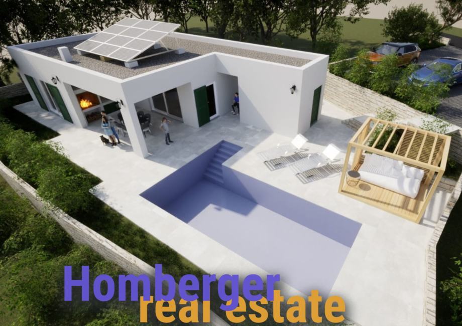 U predprodaji, prekrasna moderna, energetski učinkovita obiteljska prizemnica sa bazenom.