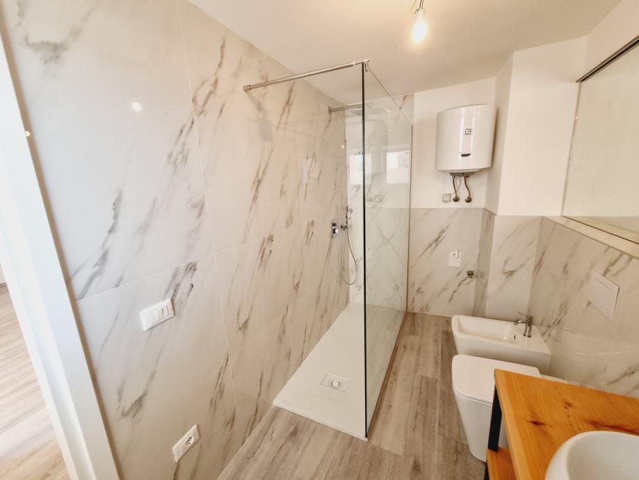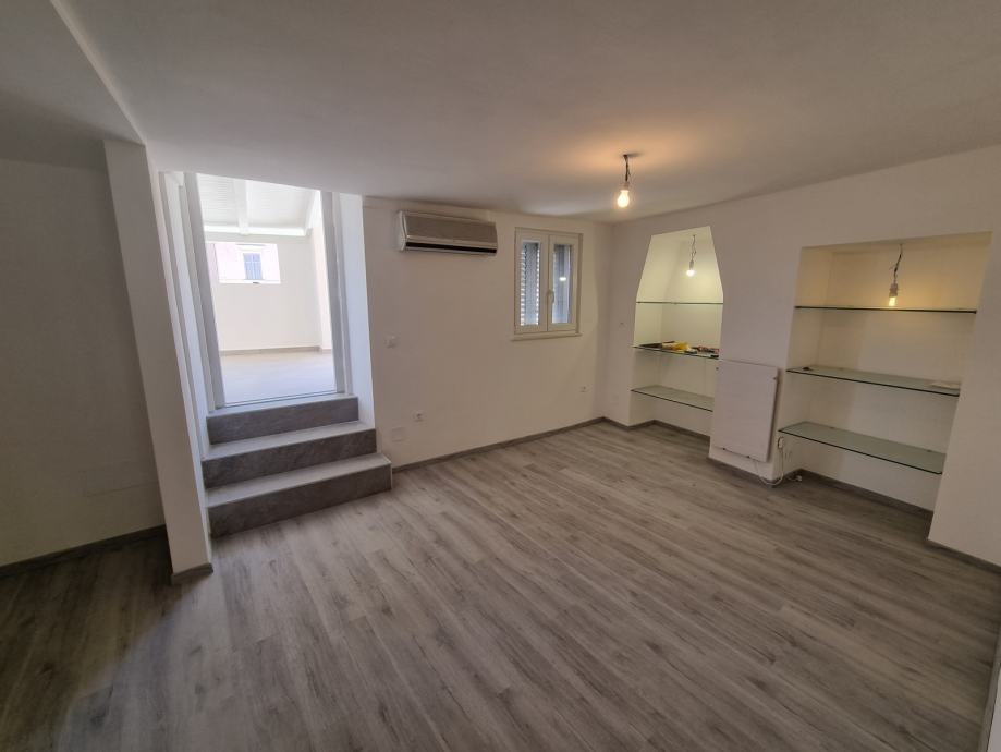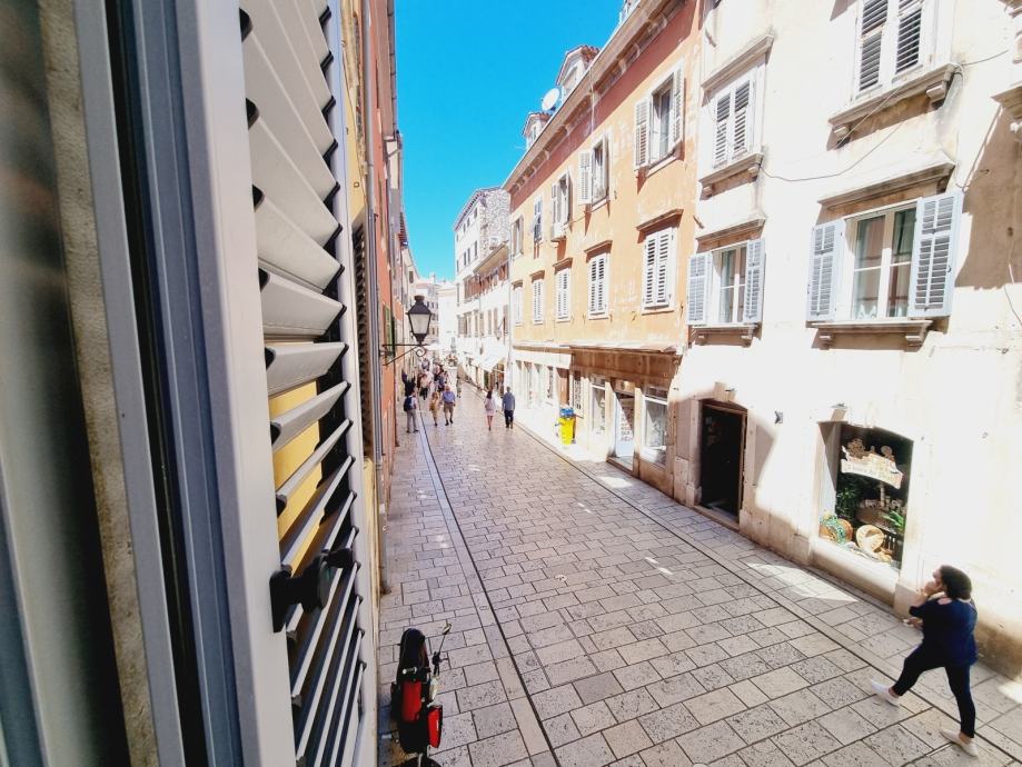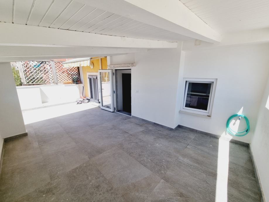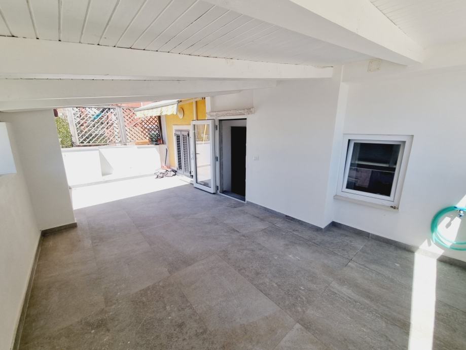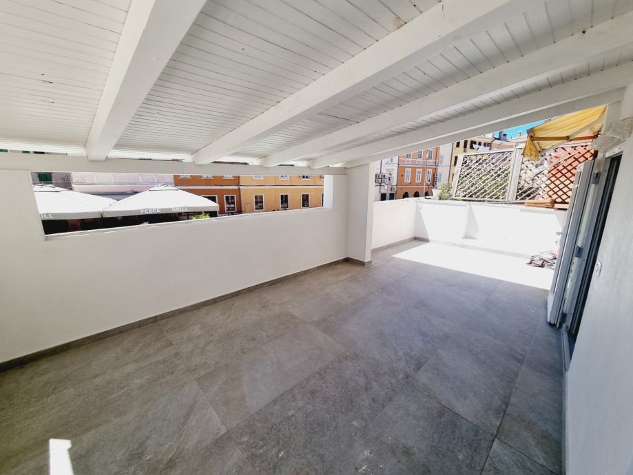 Ova se nekretnina nalazi na prvom katu povijesne zgrade, s ulazom skrivenim u uskoj kamenoj ulici. Prostor obuhvaća 55 m2 i sastoji se od dvije spavaće sobe, kupaonice i kombinirane kuhinje i dnevnog boravka. Dnevni boravak otvara se na jedinstvenu terasu - rijetkost u Rovinju - površine 20 m2 i nudi prekrasan pogled na staru gradsku jezgru i marinu.