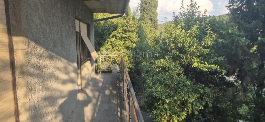 Na vrlo zanimljivoj poziciji u mjestu Svilno, pet minuta vožnje od centra Rijeke, prodajemo ovu etažu. Kuća se nalazi u prirodi, gotovo na osami, na parceli od 800 m2 a etažnim elaboratom i međuvlasničkim ugovorom ovoj bi etaži pripalo oko 650 m2 okućnice. Etažirati će se kade se pronađe kupac, sve je već dogovoreno između vlasnika obje etaže koje čine ovaj objekat. Stan se nalazi na prvom katu i potrebna je adaptacija. Sastoji se od dnevnog boravka sa kuhinjom, tri spavaće sobe od kojih je jedna manja, kupaonice i smočnice. Duž cijele kuće proteže se balkon od 10 m2 sa otvorenim pogledom. Nakon etažiranja površina će biti i veća obzirom da će u elaborat ući stubište i ulazni balkon. Nekretnina ima jako puno potencijala i uz dodatna ulaganja mogao bi se napraviti jedan izuzetno lijep stan - etaža sa velikom okućnicom. Vrlo zanimljiva nekretnina, rijetkost u ponudi.
