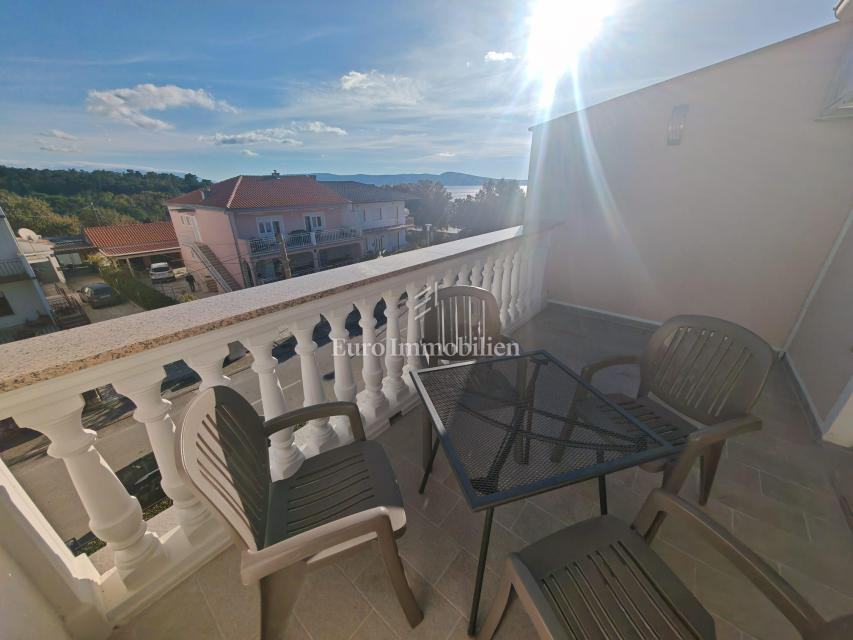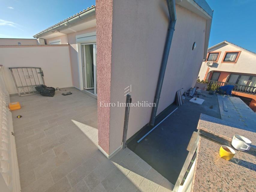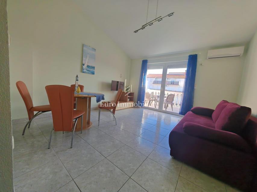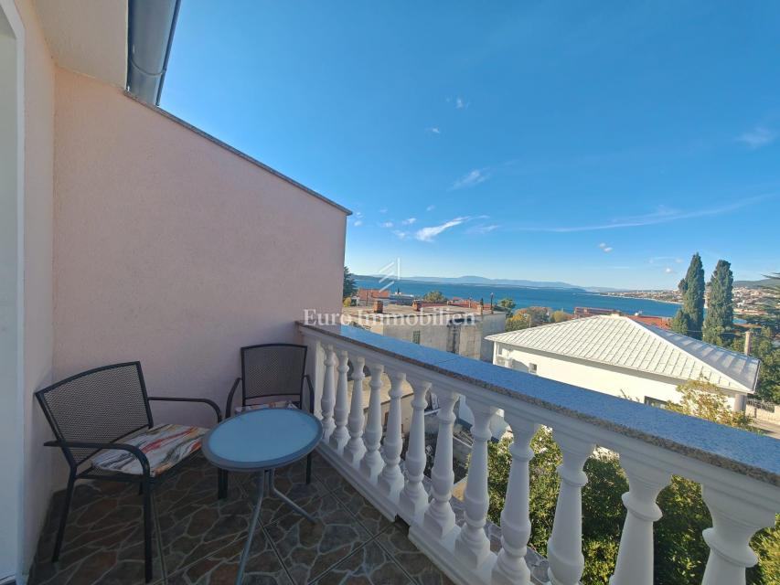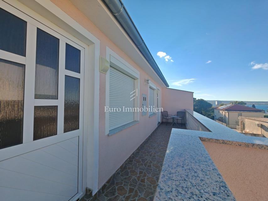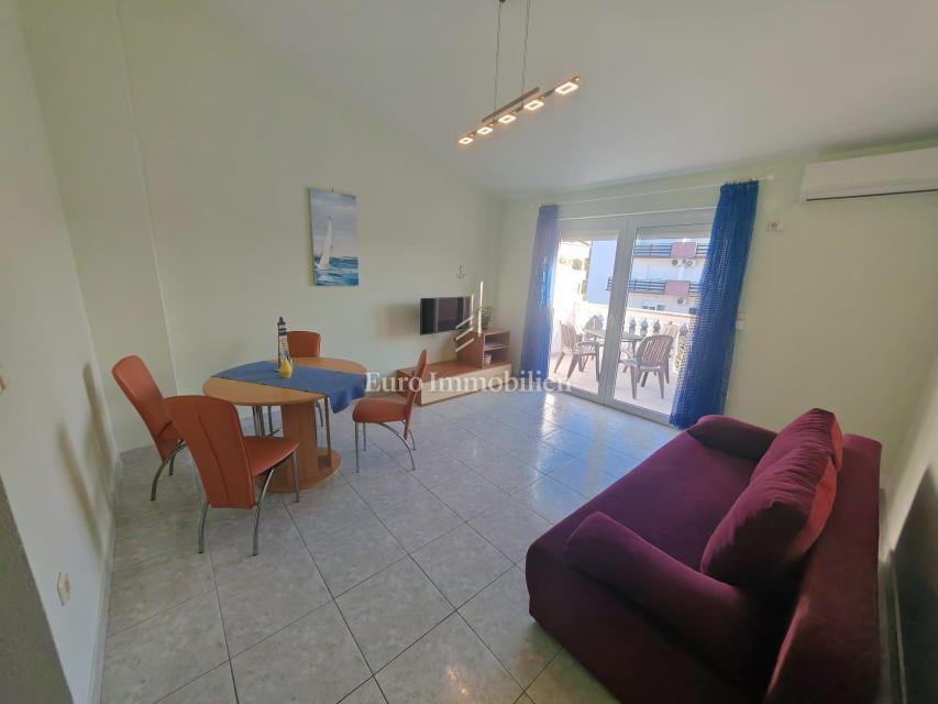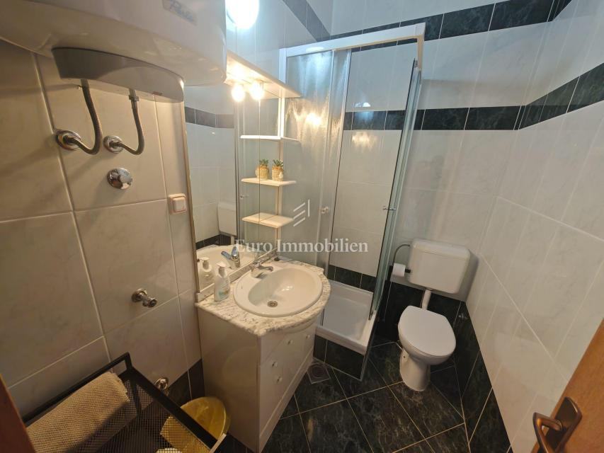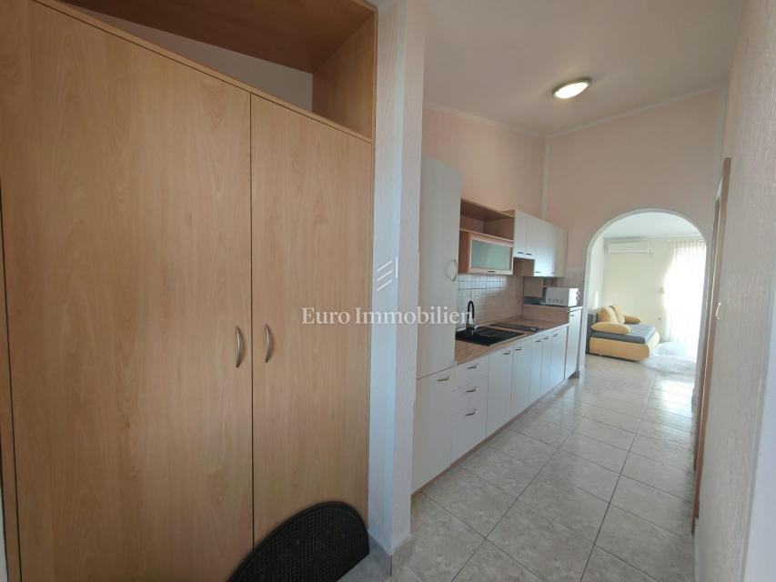 Prodaje se etaža na kraju mirne slijepe ulice koja se sastoji od dva odvojena stana. Stanovi se sastoje od ulaznog hodnika, spavaće sobe, kupaonice i dnevnog boravka s blagovaonicom. Oba stana imaju i južnu i sjevernu terasu s pogledom na more. Stanovi su izuzetno uredni, klimatizirani i odmah useljivi. Etaži pripadaju i dva parkirna mjesta na okućnici.