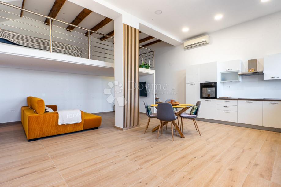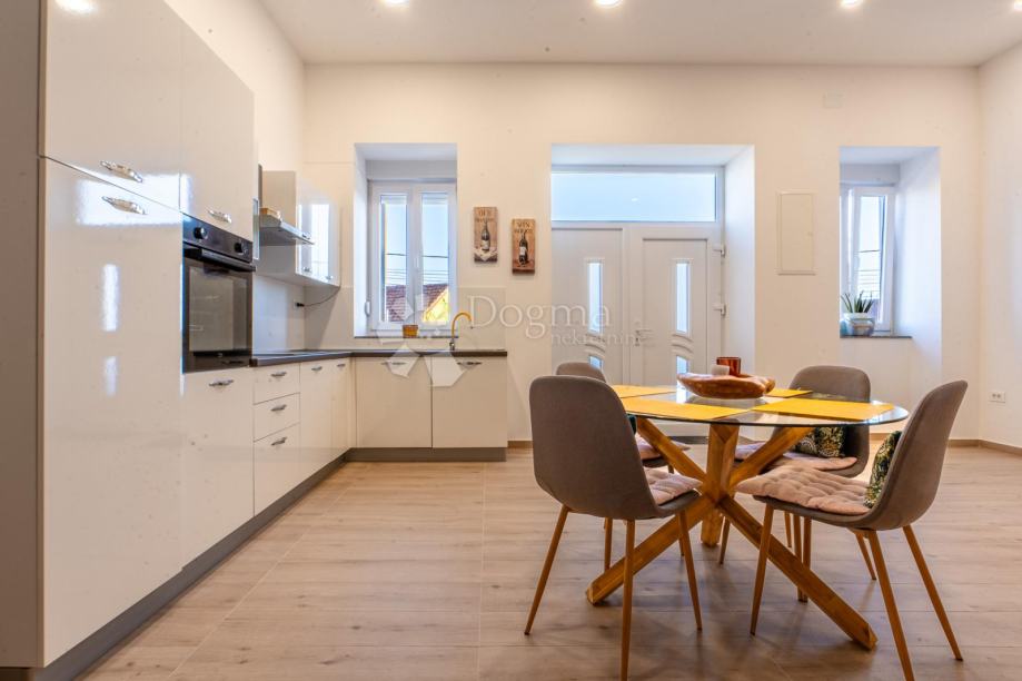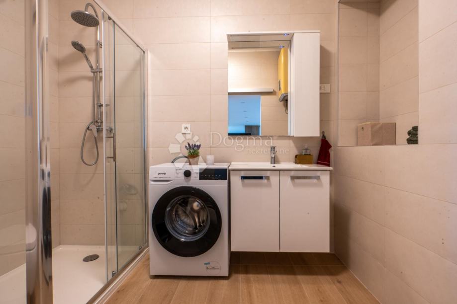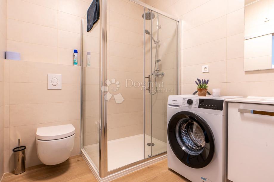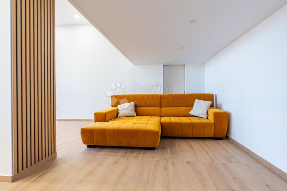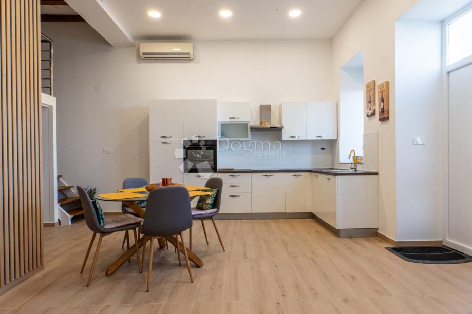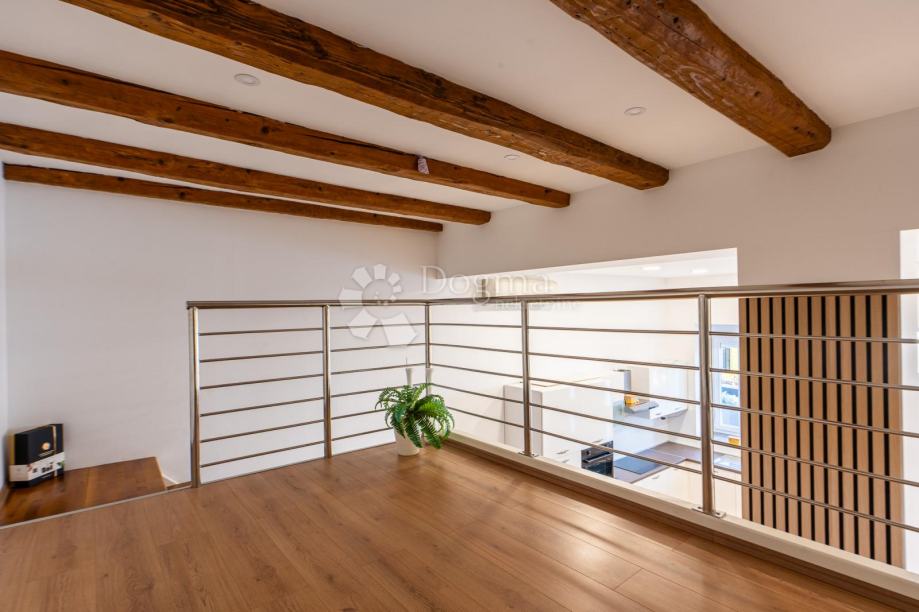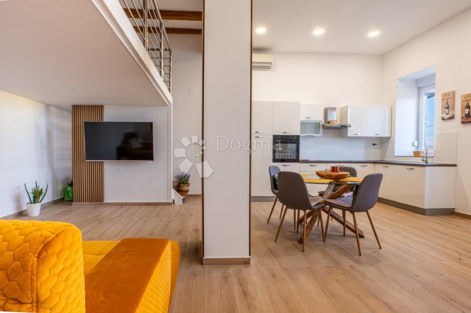 Predstavljamo vam potpuno novoadaptirani stan u prizemlju kuće sa dva stana. Ispred njega je ograđena, lijepo uređena terasa sa parkirnim mjestom vanjskim roštiljem i prekrasnim pogledom na more. Na 80 m2 stana imamo veliki dnevni boravak sa kuhinjom i blagovaonom u open-space varijanti, spavaću sobu, kupaonicu i prostranu galeriju gdje je druga spavaonica. Također stan ima posebno spremište u vanjskom dijelu kao idealan prostor za sve vrtne potrebštine.