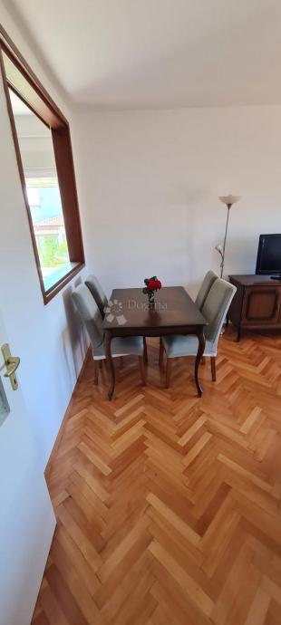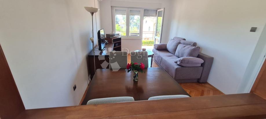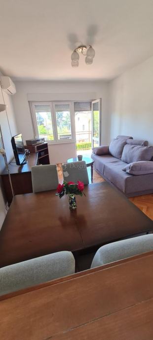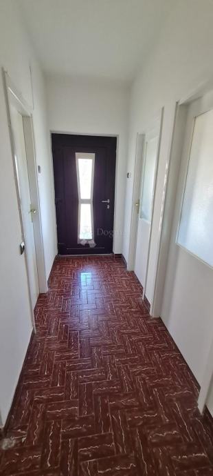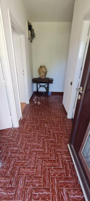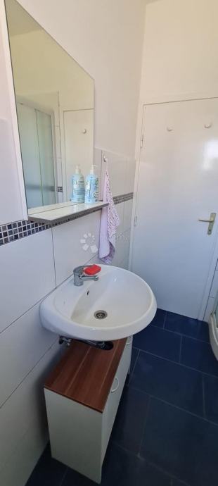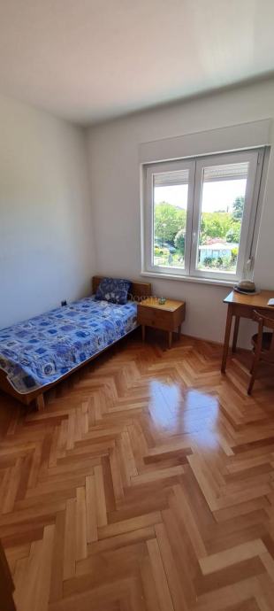 Dobili smo stan u maloj višeobiteljskoj zgradi sa dvije etaže. Stan koji se prodaje je na prvom katu i odličnog je i prilagodljivog rasporeda. Ulazi se vlastitim stubištem sa podestom, hodnik je u obliku slov L. Iz hodnika se ulazi u sve prostroije u stanu. Imamo 4 sobe od kojih je jedna dnevni boravak, te tri spavaće sobe. Kupaonica i toalet su odvojeni i uređeni pred dvije godine.Kuhinja je odvojena od dnevnog boravka, ali gornji dio zida je klizna stijena. Zid je moguće ukloniti jer nije nosivi dio konstrukcije kuće. Stan je može kupiti sa ili bez namještaja. Na dnevnom dijelu je terasa sa kliznom stijenom sa koje se vidi more.