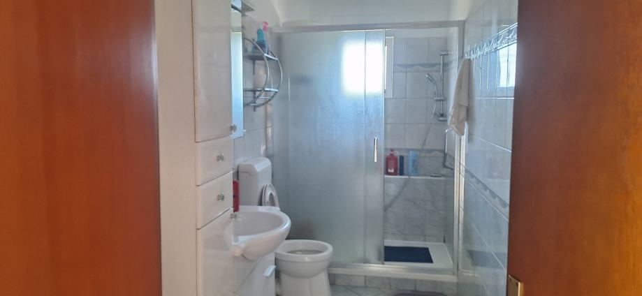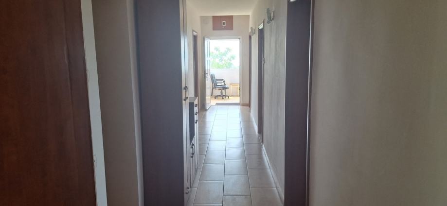 Pehlin, odlična etaža koja se nalazi na 2 katu stambenog objekta sa malom okućnicom i 2 parkirna mjesta. Etaža ima 113m2, 4s+db, i predivan pogled na more . Prije nekoliko godina promijenjena vanjska i unutarnja stolarija, podovi, kupaona. Odlično za veću obitelj .