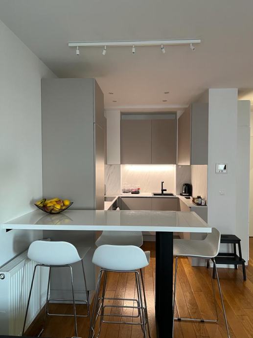 Stan je opremljen stolarijom po mjeri i svim uređajima visoke kvalitete potrebnim za življenje.