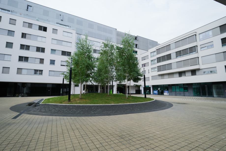 Zagreb, Trnje, EUROBLOK, jednosoban stan na 3. katu stambene zgrade novije gradnje zatvorene površine 46,76 m2. Stan se sastoji od hodnika, dnevnog boravka, kuhinje, kupaonice s podnim grijanjem, sobe i loggie. Stanu pripada i spremište 3,17 m2.
