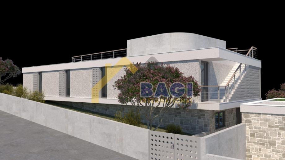 Na gornjem katu nalaze se četiri spavaće sobe, svaka s vlastitom kupaonicom, a sve sobe dijele zajednički balkon. Dodatni prostor nudi krovna terasa s nevjerojatnim panoramskim pogledom na more.