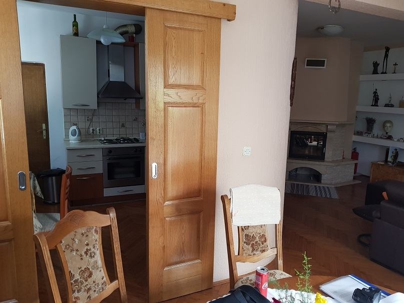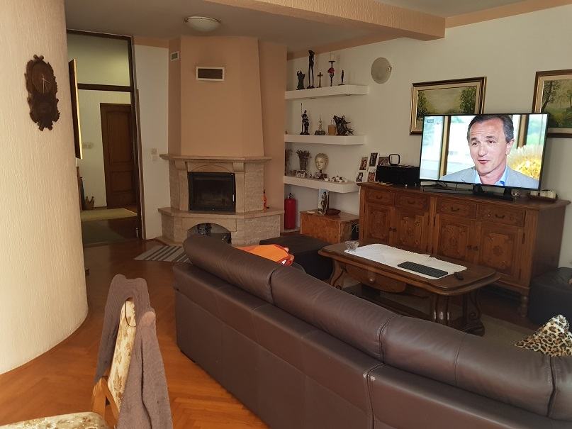 Stambena katnica građena 1998. godine, na parceli površine 307m2. Površina stambena kuće proteže na četiri etaže ukupne površine 250m2. Kuća ima manji podrum, prizemlje, kat i potkrovlje. Kompletnu kuću odlikuje kvalitetna izvedba radova,izolacija vanjske i unutarnje fasade,stolarija i svih sanitarija. Prva etaža/prizemlje kuće ima od ulične strane lokal od 40m2,sa zasebnim ulazom,a sastoji se iz jedne prostorije i dva sanitarna čvora. Sa iste strane kuće je i haustor koji je dvoljno velik za tri automobila. Ispred kuće je također parking za tri automobila.U stambenom djelu prizemlja se nalazi prostrani dnevni boravak koji ima prekrasni pravi kamin,kuhinja sa blagavaonicom koja ima izlaz na prostranu i natkrivenu terasu,na kojoj se nalazi zidani roštilj,hodnik i kupaonica. Kat kuće sastoji se iz četiri prostrane sobe sa garderobama od kojih dvije imaju balkone,extra prostrana kupaonica s praonicom rublja te zimski vrt. Potkrovlje kuće je uređeno kao hobi prostor gdje se nalazi apartman sa kupaonicom te slikarski atelje i tavan. Podrum je manji i ima jednu prostoriju.U dvorištu se nalazi lokal koji ima zaseban ulaz iz druge ulice,a sastoji se iz jedne prostorije i samostalne ostave sa dva sanitarna čvora i zasebnim ulazom. Grijanje kuće je centralno plinsko,kombi bojler je najnovije generacije,kamin i klimatizacijski uređaji po cijeloj kući. Kuća je osigurana video nadzorom i alarmnim sistemom.