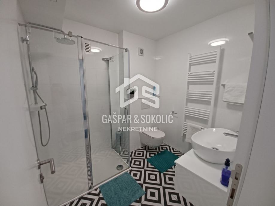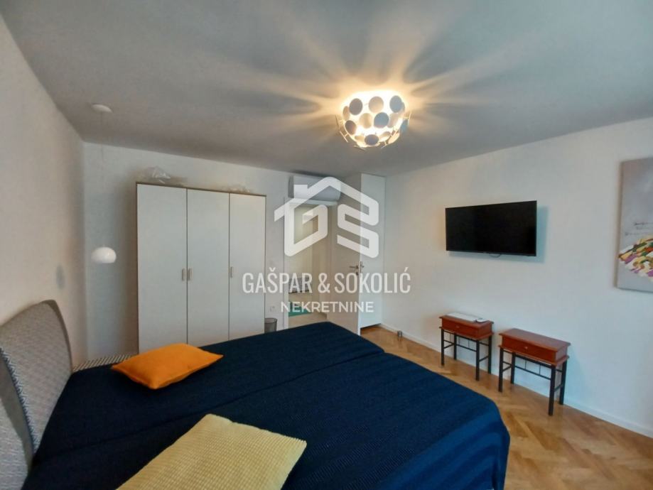 Stan je klimatiziran (dnevna soba i obje spavaće), a grijanje je plinsko etažno.