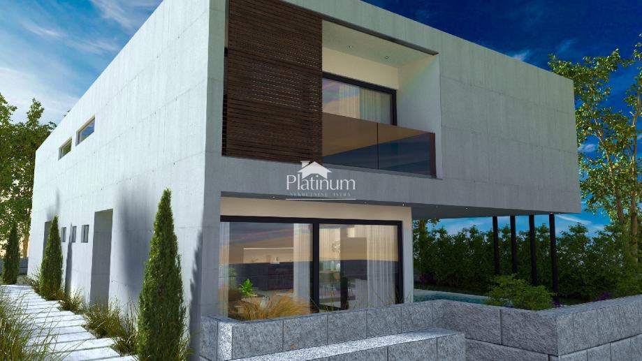 Istra, Fažana – Projekt luksuzne vile s bazenom, pogled na more, prostire se na dvije etaže modernog dizajna. Prizemno je smješten dnevni dio površine 81,01 m2; dnevni boravak, kuhinja s blagovaonicom, ostava, i toalet. Iz dnevnog boravka i blagovaonice izlazi se na natkrivene terase, u nastavku kojih je smješten i bazen. Unutranjim stepeništem dolazimo na gornju etažu površine 82,47 koja se sastoji od predsoblja i 3 spavaće sobe. Svaka soba ima svoje walk-in kupatilo i balkon. Predviđena su 3 parkirna mjesta. Pripadajuća okućnica je površine 210 m2. U naravi se radi o dvojnoj vili, svaka sa svojim bazenom.