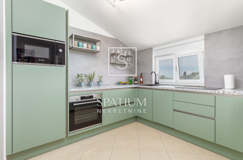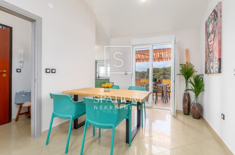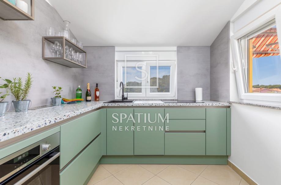 FAŽANA, u ponudu smo dobili stan na trećem katu zgrade ukupne površine 75,77 m². Sastoji se od hodnika, prostranog dnevnog boravka s blagovaonicom, međuprostora, dvije spavaće sobe, kupaonice, kuhinje i ostave, dok mu dodatnu vrijednost daju lođa i vlastito natkriveno parkirališno mjesto u dvorištu zgrade. Stan je kompletno namješten, opremljen svim potrebnim uređajima te odmah spreman za useljenje ili turistički najam.