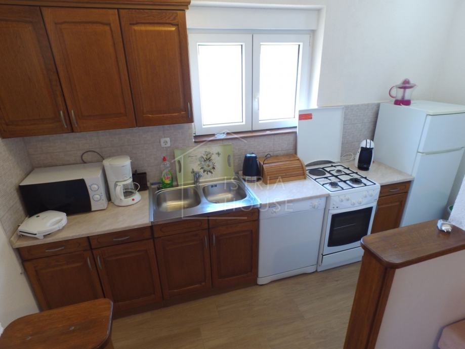 Na svega 600 metara udaljenosti od mora te u blizini svih pratećih sadržaja prodaje se kuća sa uhodanim apartmanima koji ostvaruju zavidnu popunjenost.