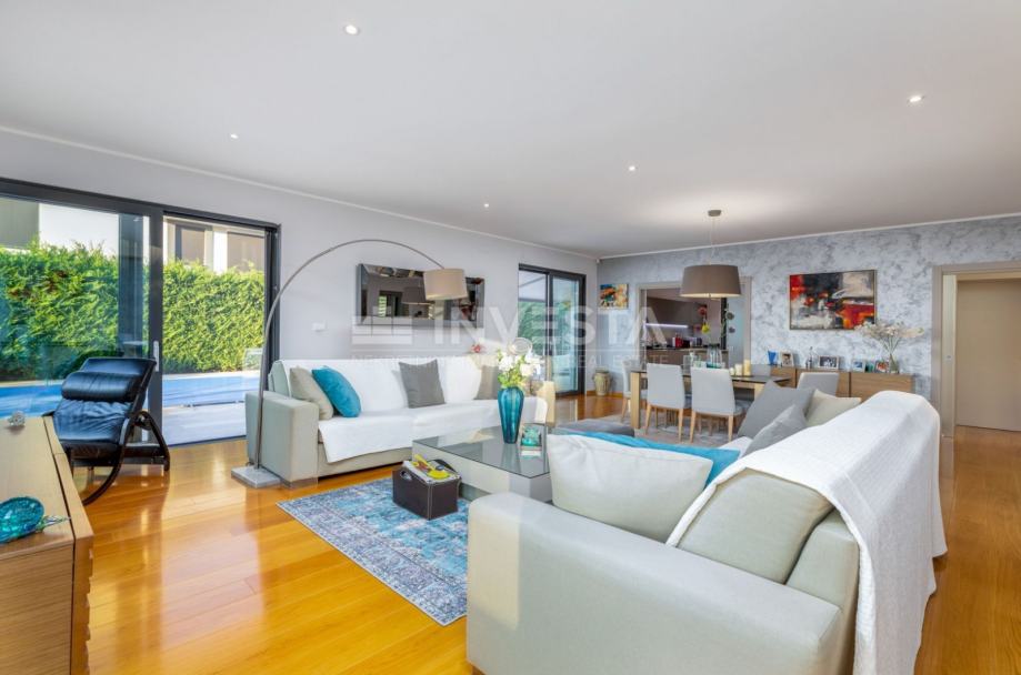 U blizini centra Fažane, na samo 70 m od prekrasnih plaža prodaje se luksuzna kuća sa liftom, pogledom na more, bazenom i jacuzzijem.