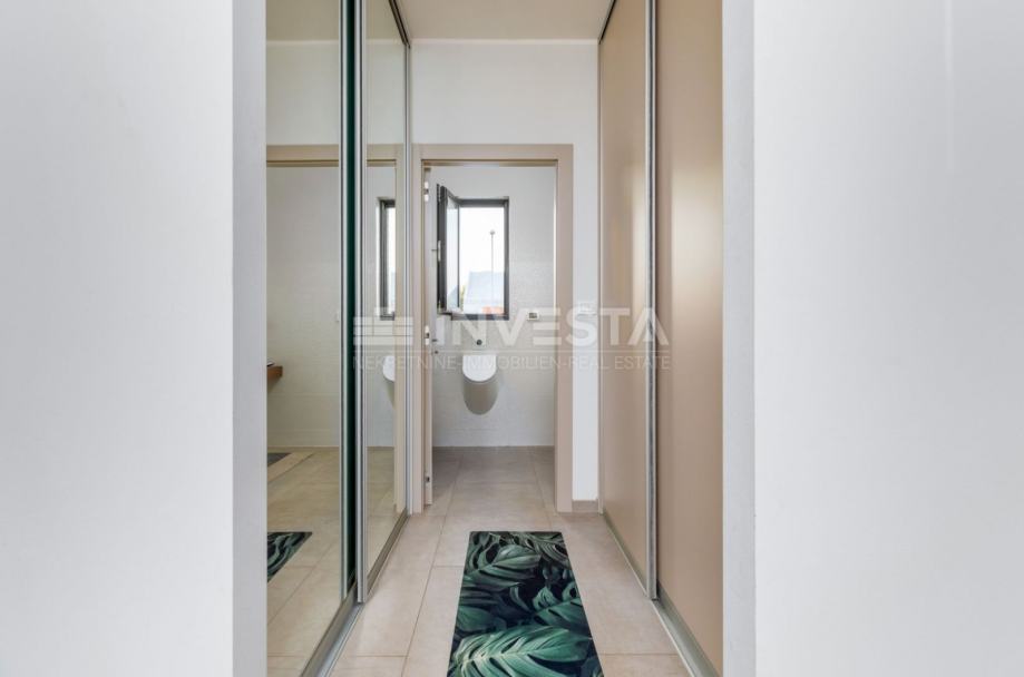Krovna terasa ima otvoren pogled na more i Brijunsko otočje. Na njoj se nalazi vanjski tuš i solarni paneli za grijanje bazena i vode.