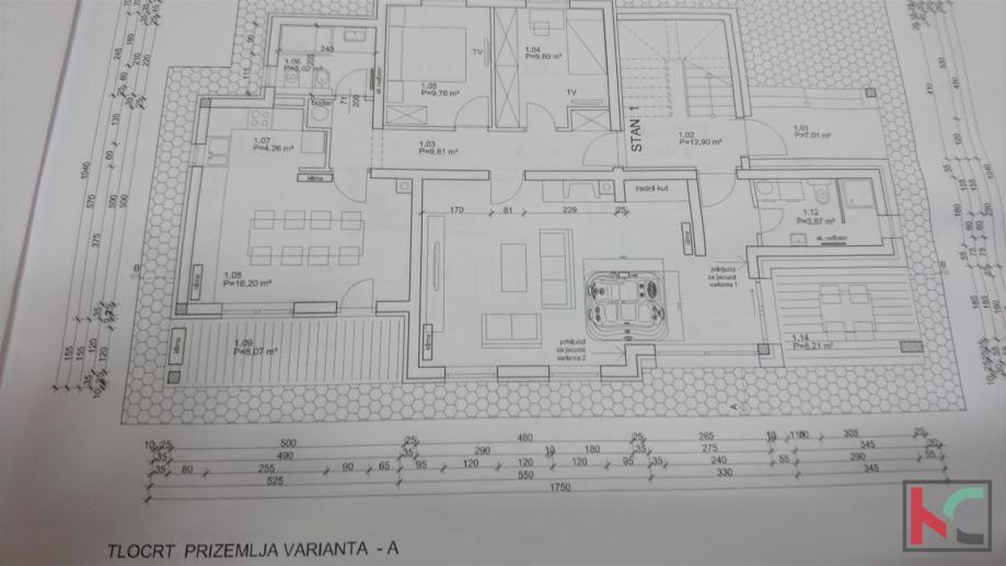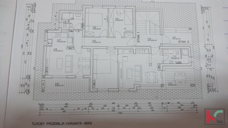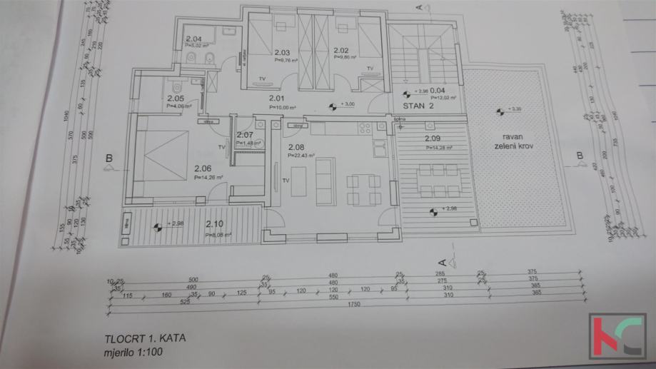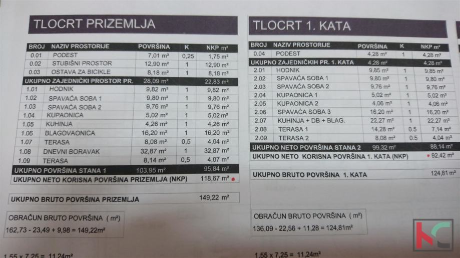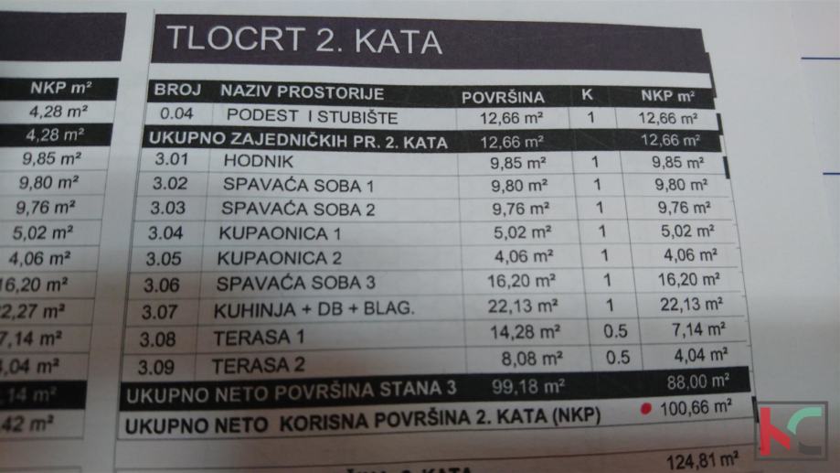 Svaki stan ima po tri spavaće sobe osim onog u prizemlju sa dvije spavaće sobe te dodatnom velikom okućnicom te bazenom, svi stanovi imaju po dva kupatila, dvije terase, dnevni boravak, kuhinju s blagovaonom, stubišni prostor, ostavu i osigurano parking mjesto.
