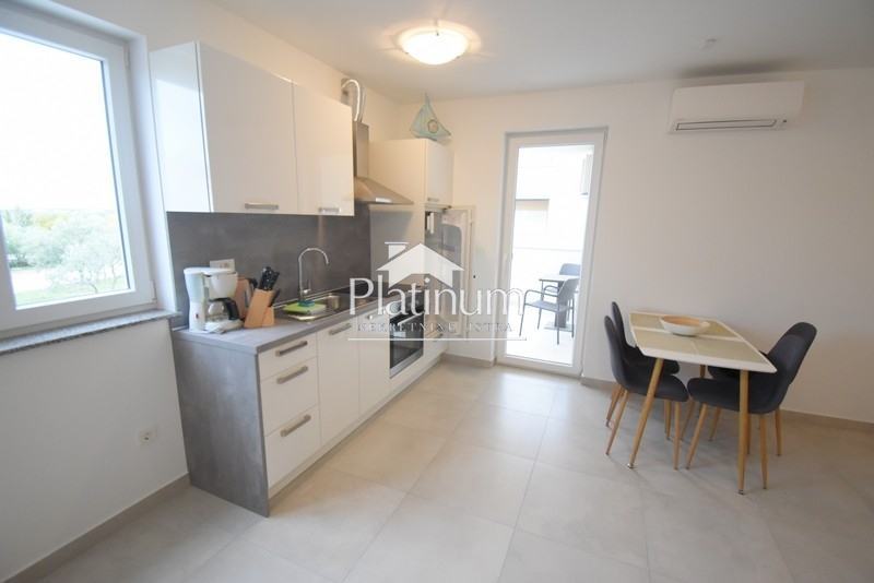 APARTMAN POVRŠINE 61m2 i sastoji se od hodnika, kupaone, ostave, 2 sobe, blagovaone, kuhinjei terase sa pogledom na more.