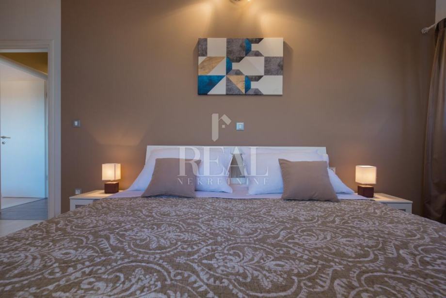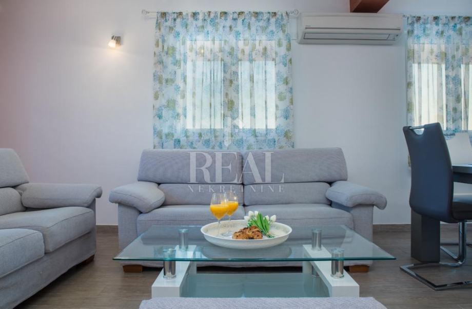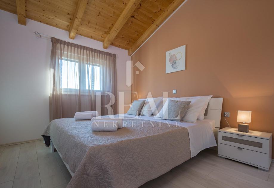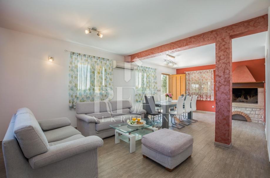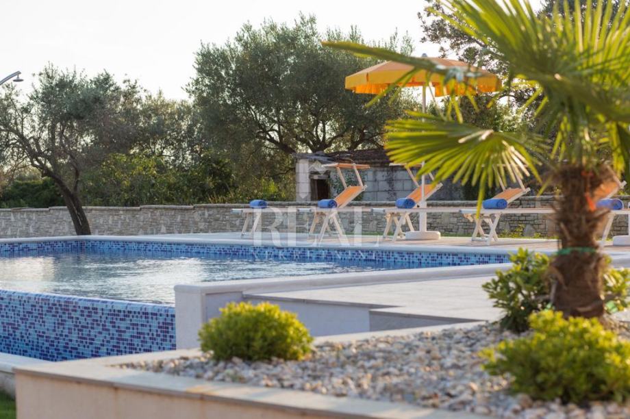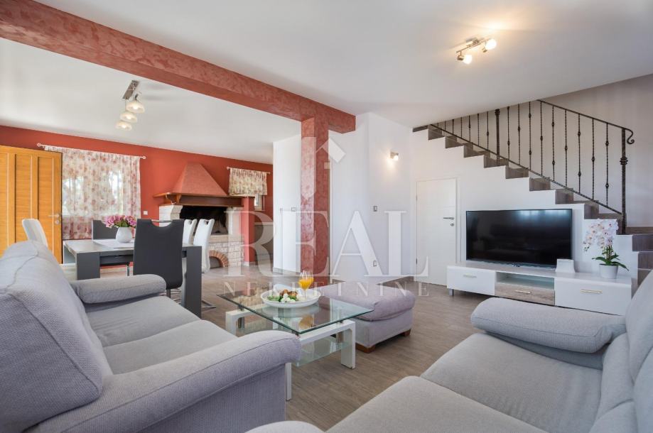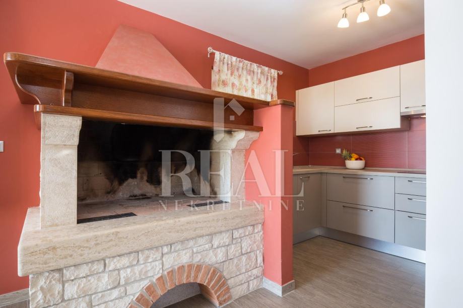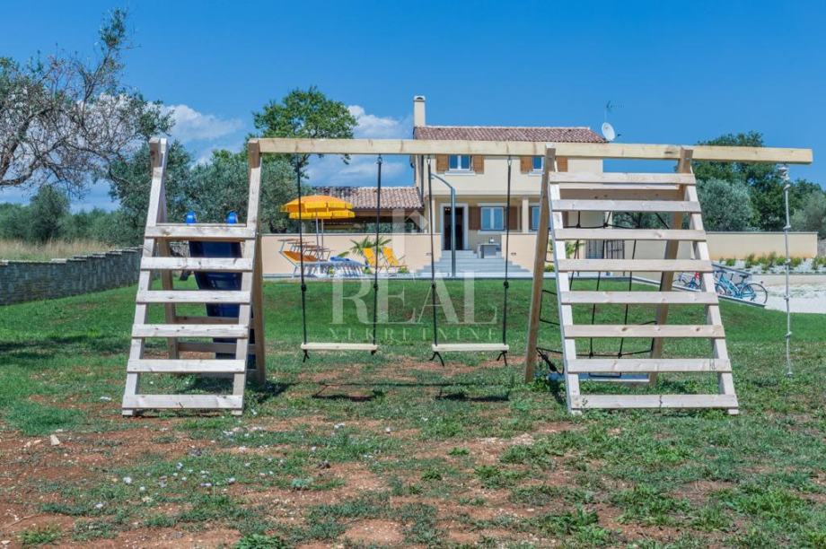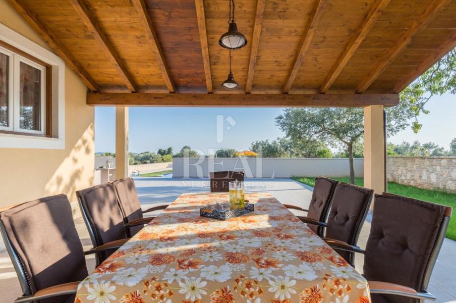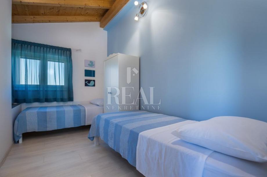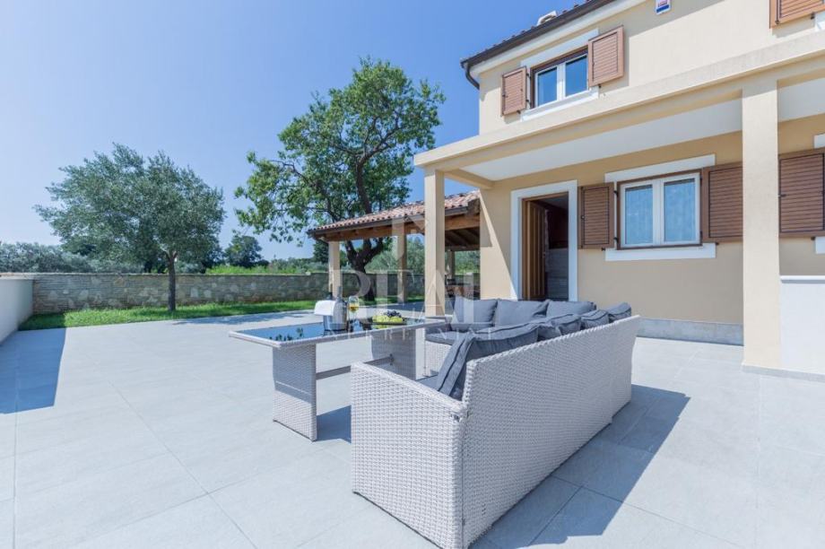 Okružena je zelenilom na samini a svega 700m je udaljena od uređene plaže za kupanje.Objekt ima prizemlje i prvi kat i sa oba dvije etaže se proteže prekrasan pogled na more i Brijunsko otočje.U prizemlju nekretnine nalazi se prostrani dnevni boravak sa kuhinjom i blagavaonicom koji imaju direktan izlaz na terasu i bazen te veliku uređenu okućnicu .Na katu su tri spavaće sobe i kupaonice.Grijanje u objektu je na klima uređeje i kamin na kruta goriva.