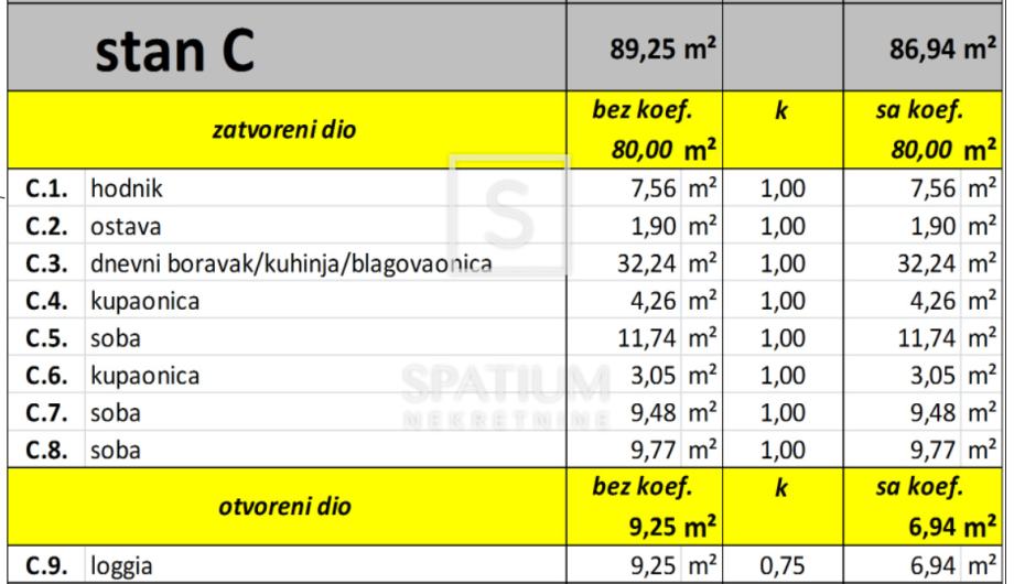 - prostrana loggia: 9.25 m² (obračunski 6.94 m²)