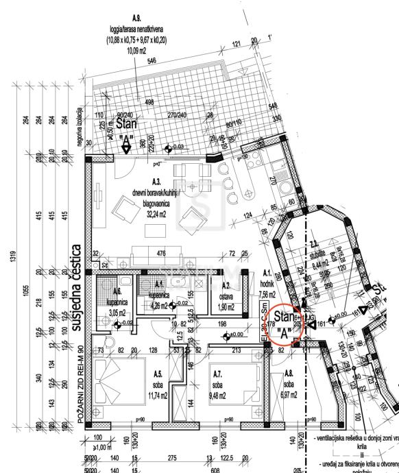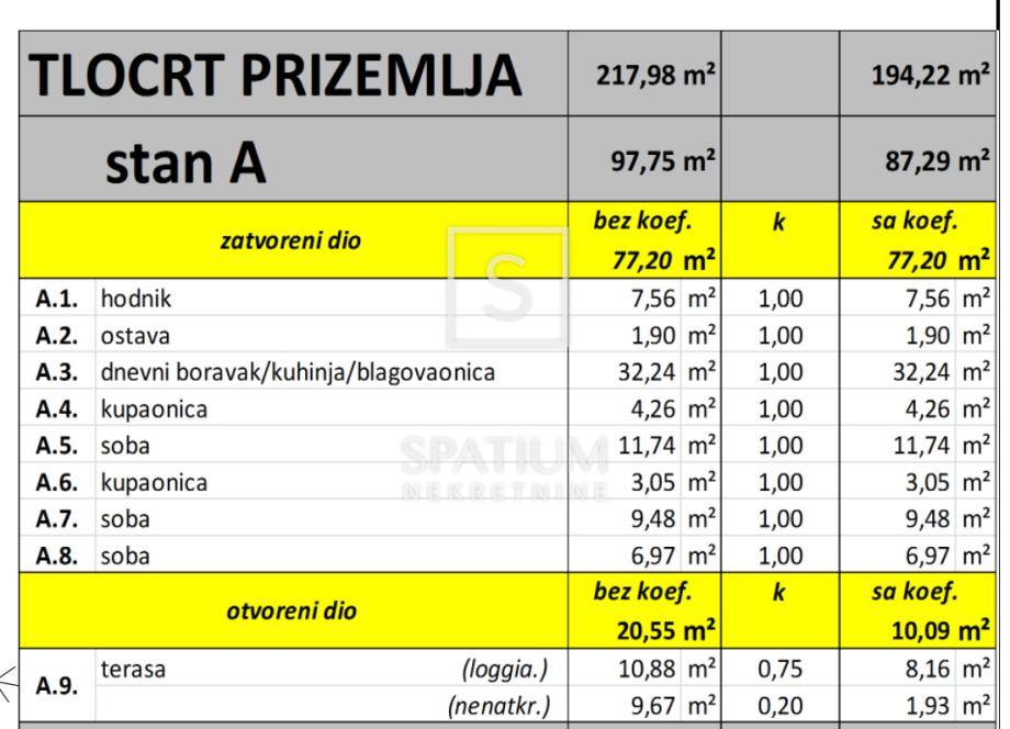 - prostrana terasa: 20,55 m² (obračunski 10,09 m²)