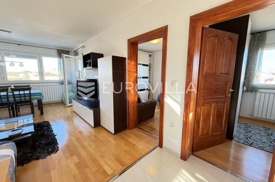 Located in Valbandon, only 600 meters from the sea, this beautiful and sunny three-bedroom apartment is for rent on the 2nd floor of a residential building in a quiet location. The area is 70.20 m2, and consists of: an entrance hall with a large and spacious built-in wardrobe, bathroom, kitchen,...