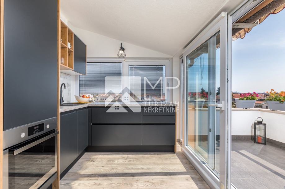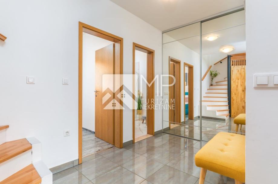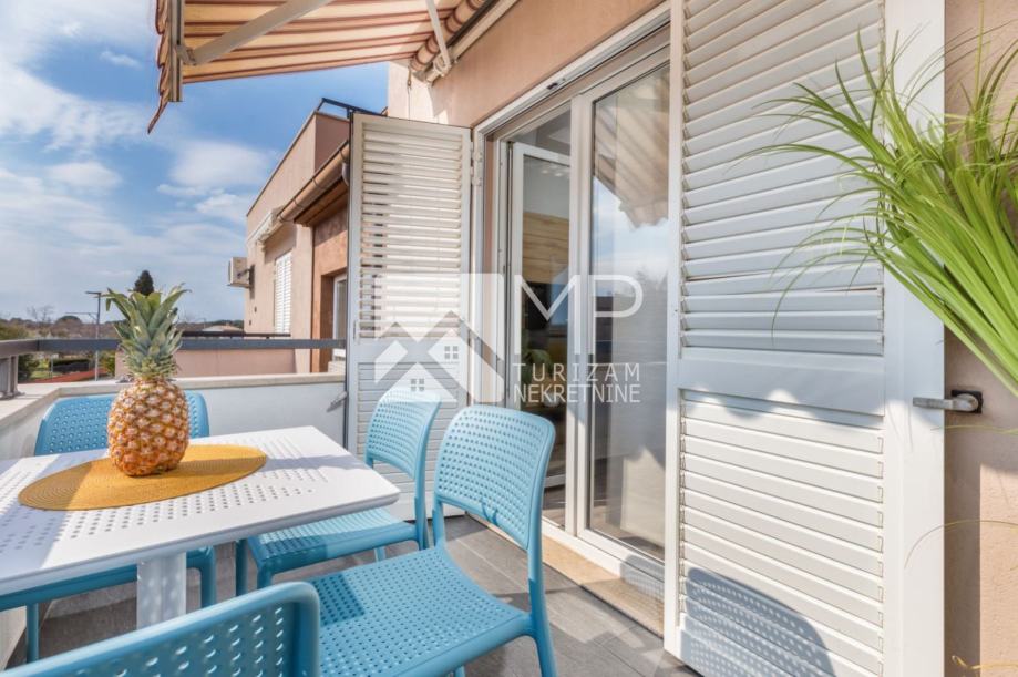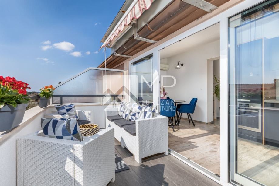 Na prodaju je moderno uređen dvoetažni stan na odličnoj lokaciji, 500m od mora, u mjestu Valbandon, koje se nalazi odmah prije Fažane.
