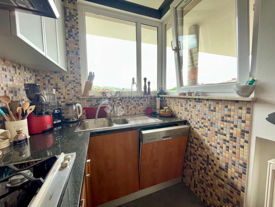 Stan je izuzetno ugodan, brižno održavan, osvijetljen prirodnim svjetlom, obiluje velikim prozorima i staklenim stijenama te je opremljen nizom praktičnih dizajnerskih rješenja u vidu ugradbenih ormara i rješenja za pohranu garderobe i stvari koje se ne koriste svakodnevno. Stanu pripada i spremište u podrumu, a vaš limeni ljubimac smjestit će se u prostranoj garaži koja pripada ovom stanu.