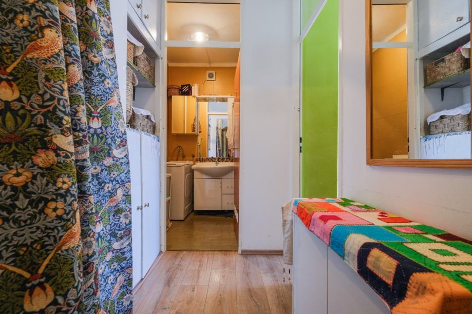 S obzirom na pregrađen dio dnevnog boravka, dobivena je još jedna spavaća soba (bez prozora, ali s dovoljno svjetlosti).