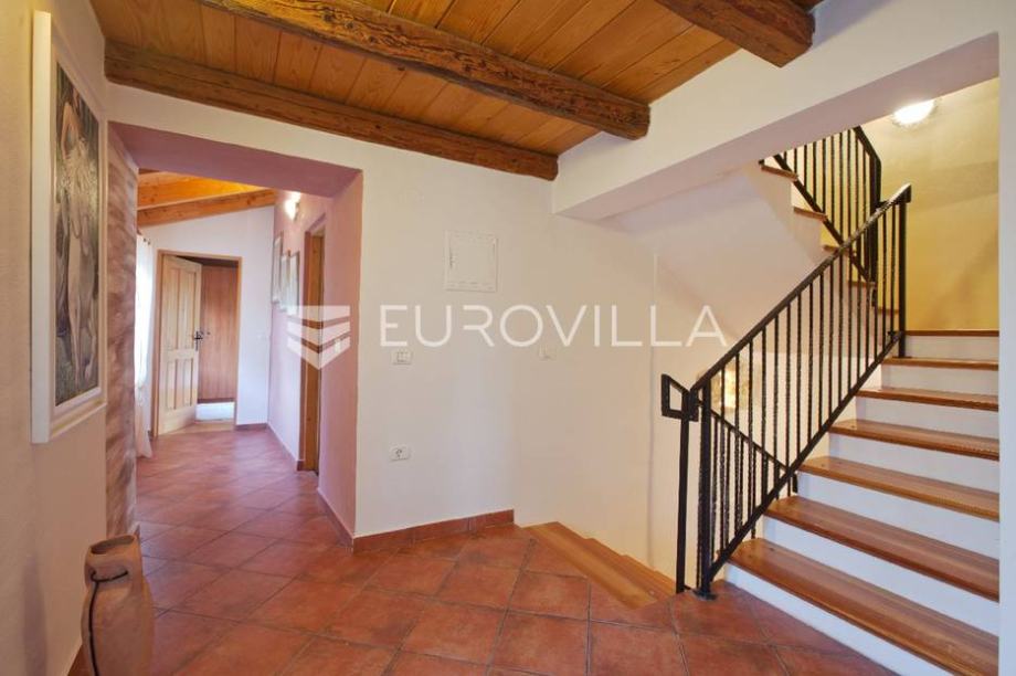Ulaskom u kamenu vilu nalazi se manje ulazno predvorje s odvojenom gostinjskom kupaonicom. Isto se predvorje dalje spaja s prostranim i toplim dnevnim boravkom. Glavnu točku dnevnog prostora zauzima originalno i funkcionalno kameno ognjište idealno za grijanje cijeloga prostora tijekom hladnijih...