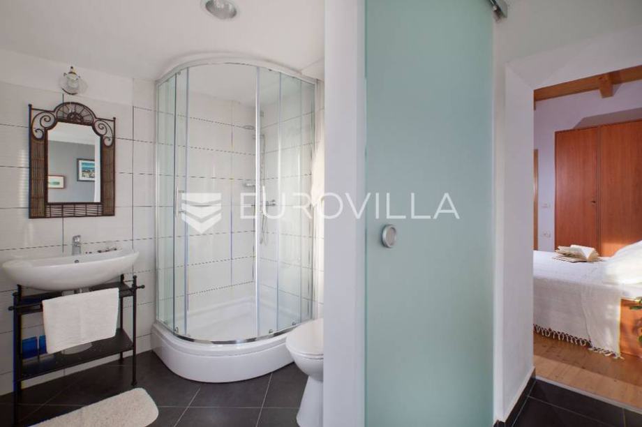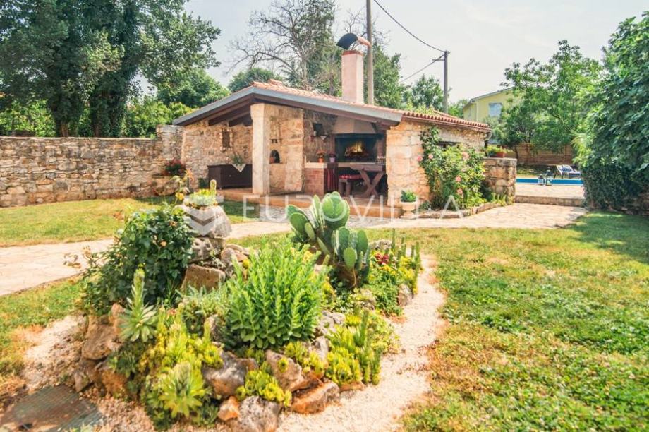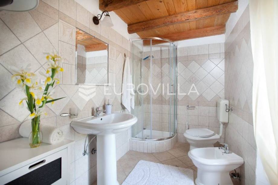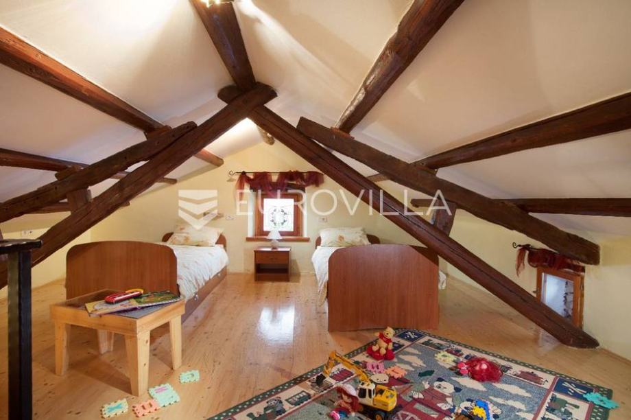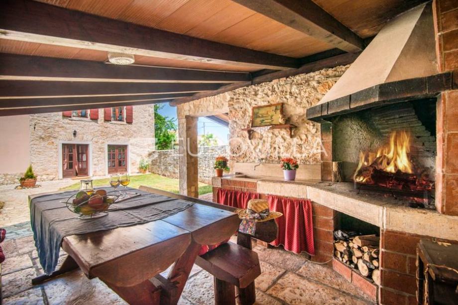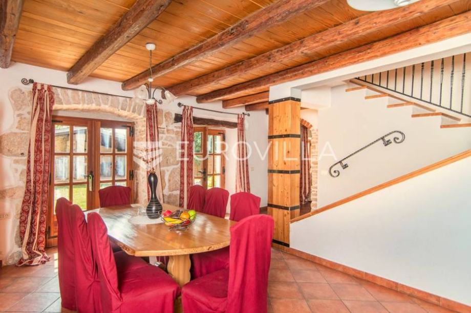 Ulaskom u kamenu vilu nalazi se manje ulazno predvorje s odvojenom gostinjskom kupaonicom. Isto se predvorje dalje spaja s prostranim i toplim dnevnim boravkom. Glavnu točku dnevnog prostora zauzima originalno i funkcionalno kameno ognjište idealno za grijanje cijeloga prostora tijekom hladnijih...