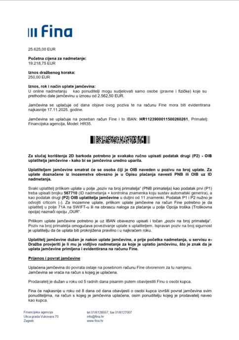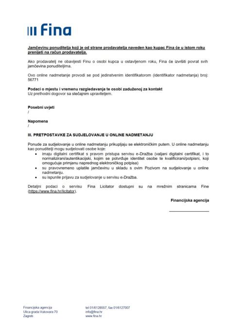 Prodaje se slobodno od osoba i stvari. Navedena nekretnina predmet je unovčenja u stečajnom postupku koji se vodi pred Trgovačkim sudom u Zagrebu.