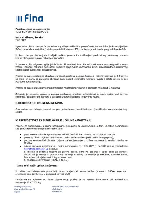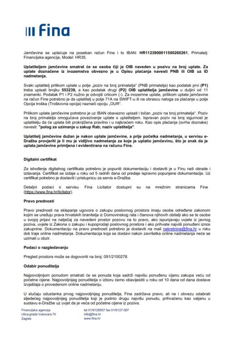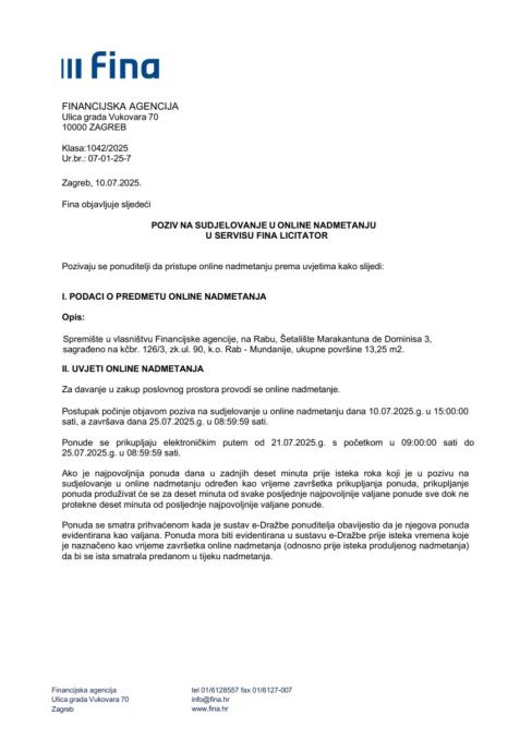 Fina Licitator - Poslovni prostor: Mundanije, 13.25 m2 (iznajmljivanje)