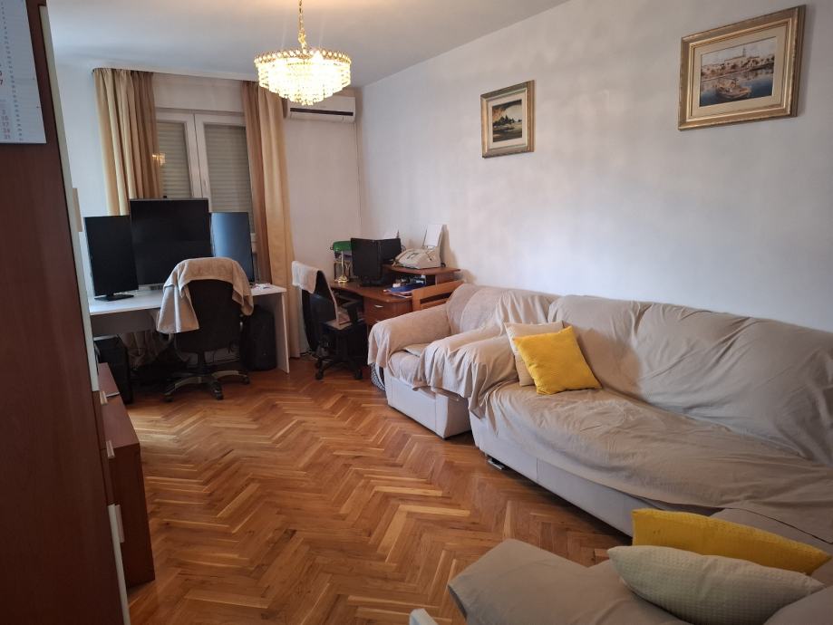 Posredujemo u prodaji komfornog uredno održavanog dvosobnog stana punog svijetla i otvorenog pogleda. Stan je smješten u zgradi sa liftom na nižem katu. Dnevni dio sa lođom i kuhinjom orijentiran je na južnoj strani zgrade, dok su dvije spavaće sobe sa kupovinom i ostavom odvojene na sjevernoj strani zgrade. Stan ima osim kupaonice sa wc i zaseban sanitarni čvor. Isti je smješten u blizini svih potrebitih sadržaja za svakodnevni život.