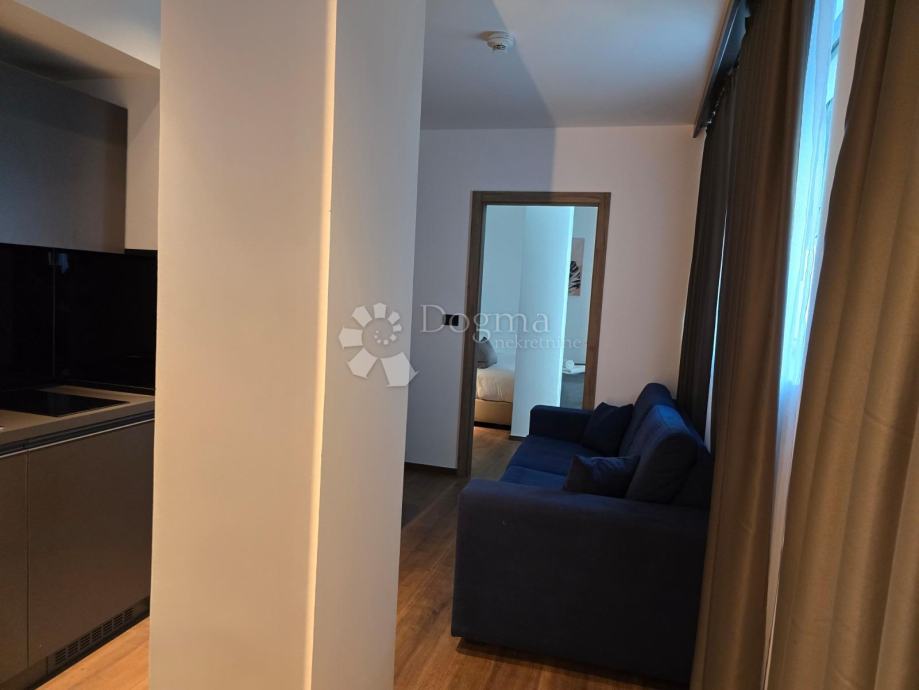 Središnji dio stana čini open space koncept u kojem su kuhinja, blagovaonica i dnevni boravak spojeni u jednu funkcionalnu i ugodnu cjelinu – idealnu za svakodnevni život, ali i za večeri bez žurbe. Spavaća soba je odvojena, pruža mir i privatnost, a kupaonica je zasebna, uredna i praktična. Stan je opremljen za normalno stanovanje, bez nametnutog stila; suđe i posteljina ostavljeni su vama, jer dom ipak treba imati osobni potpis.