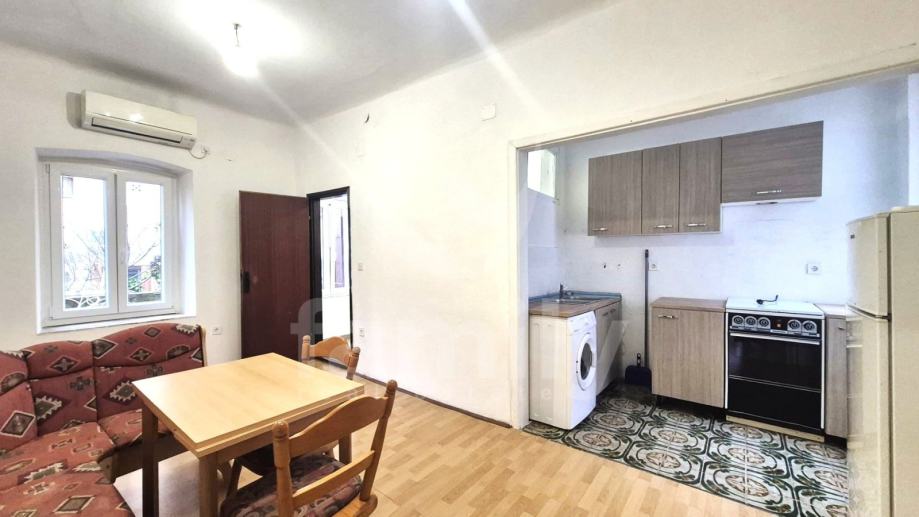 Stan se nalazi na frekventnoj lokaciji sveukupne površine 41 m2. Stan se nalazi u prizemlju kuće te je djelomično renoviran, a time se pruža mogućnost uređenja po vlastitom ukusu. Stan posjeduje manji hodnik sa velikim dnevnim otvorom, kupaonicu manje površine, blagavaonicu koja posjeduje veći dnevni otvor s pogledom na dvorište, dnevni boravak koji je povezan sa kuhinjom i dvije komforne spavaće sobe. Podovi su u cijelom objektu obloženi laminatom dok je u kupatilu postavljena keramika, postavljena je PVC stolarija te je sustav grijanja i hlađenja reguliran putem jedinice klima uređaja. Visoki stropovi također daju nekretnini poseban šarm i pregršt mogućnost za uljepšavanje.