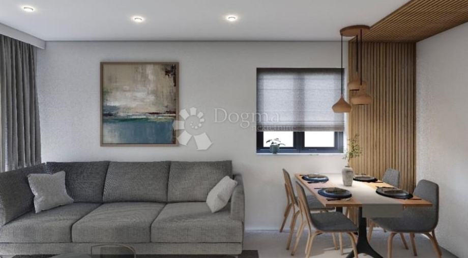 Stan se sastoji 2 spavaće sobe, prostranog dnevnog boravka koji je savršeno povezan s blagovaonicom i potpuno opremljenom kuhinjom, stvarajući otvoren i prozračan ambijent idealan za obiteljska okupljanja i druženja s prijateljima. Veliki prozori omogućuju obilje prirodne svjetlosti, čime se dodatno poboljšava atmosfera u prostoru.