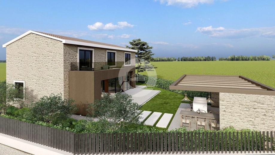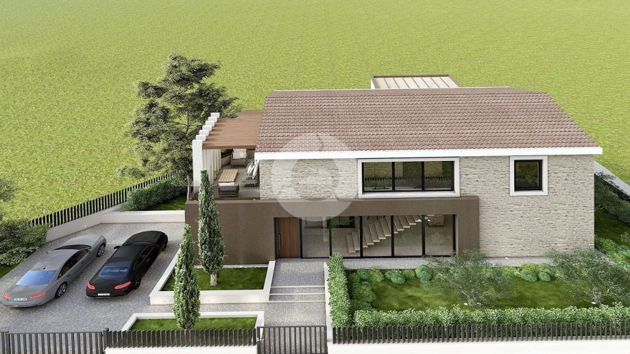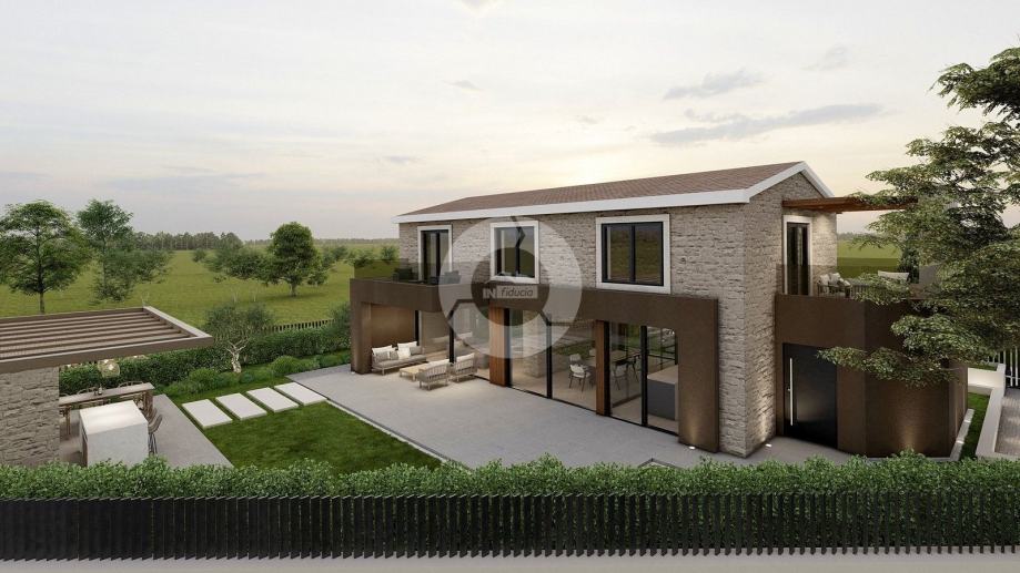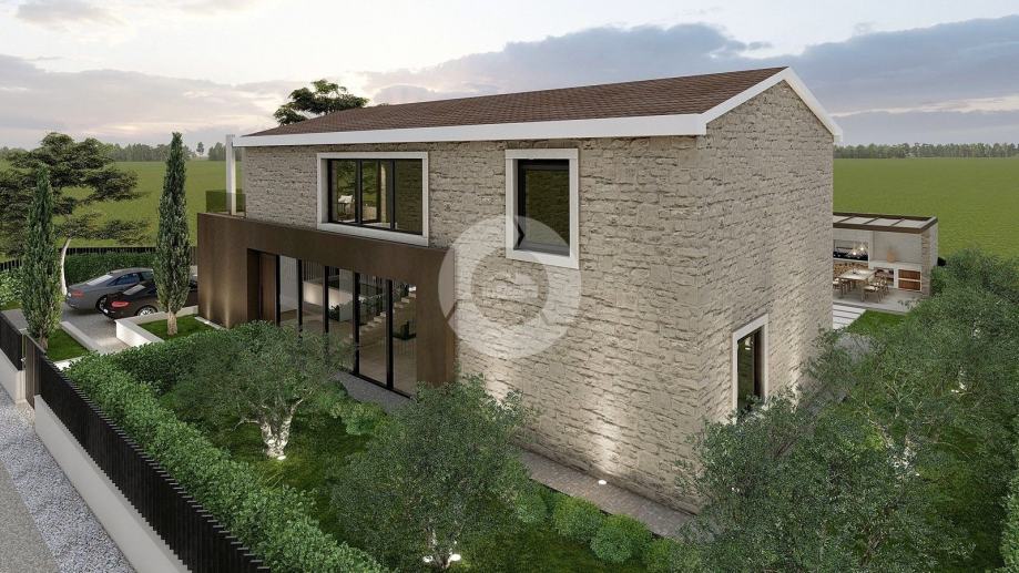 Skladan, moderan projekt obiteljske kuće rezultat je križanja tradicionalne istarske arhitekture sa suvremenim trendovima u oblikovanju kuća za odmor. Osnovne konture kuće – tlocrt u obliku izduženog pravokutnika i dvostrešni krov tipični su elementi istarske kuće, a dašak modernizma daju veliki otvori i pravilni kockasti volumeni. Kuća se nalazi u mirnom predjelu Funtane, na svega 1 km od mora pa je umjesto bazena u dvorištu predviđen vrt bogat s mediteranskim stablima, uređeno parkiralište za tri automobila i ljetna kuhinja s vanjskom blagovaonicom. Dok je gornji kat s tri spavaće sobe namijenjen za spavanje i odmor, u prizemlju se nalaze svijetao i prozračan dnevni boravak s kuhinjom i blagovaonicom. Kuća posjeduje nekoliko terasa, kako na katu, tako i u prizemlju, koje omogućuju korisnicima kuće da odaberu između sunčanja i odmora u hladu. Predviđeno je da se vrt ukrasi sa klasičnim predstavnicima lokalne flore – stare masline i čempresi će se savršeno uklopiti u ovaj mali vrt.