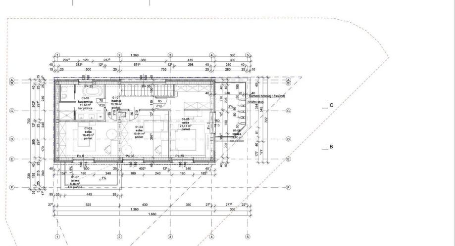 Stolarija: PVC stolarija s dvostrukim ostakljenjem - Motorizirane rolete - Aluminijska ulazna vrata - Klasična sobna vrata