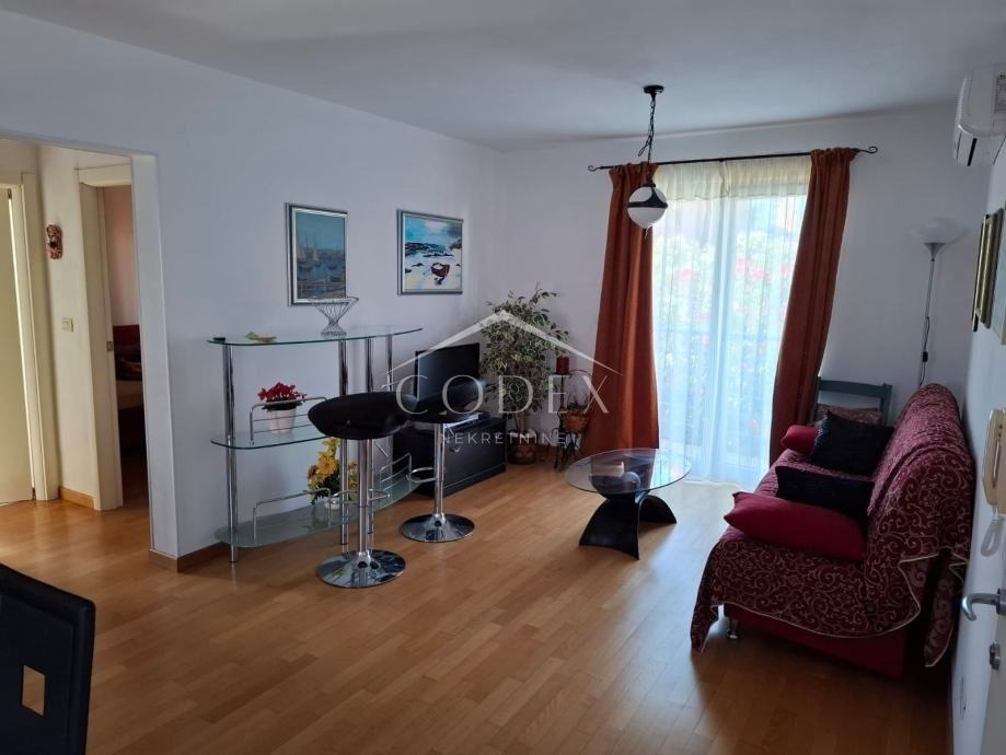 Ovaj moderno opremljen apartman od 61 m² nalazi se na 1. katu i nudi sve što vam je potrebno za ugodan odmor. Sastoji se od dvije spavaće sobe, prostranog dnevnog boravka s kuhinjom, kupaonice i prekrasne terase. Apartman je potpuno namješten i opremljen, a zgrada je izgrađena 2008. godine.