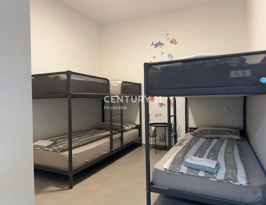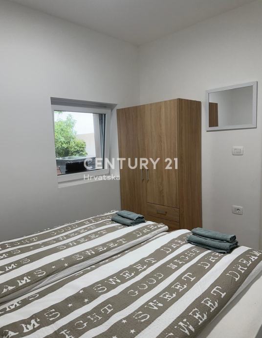 Stan je potpuno nov, sastoji se od hodnika, dvije spavaće sobe, jedne kupaonice i velikog dnevnog boravka s pojenog s blagovaonicom i kuhinjom te izlazom na jako lijepu, veliku terasu.