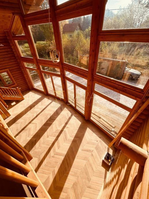 Ova nekretnina spaja vrhunsku kvalitetu gradnje s udobnošću moderne drvene kuće u prirodnom okruženju, pružajući savršen bijeg od gradske gužve.