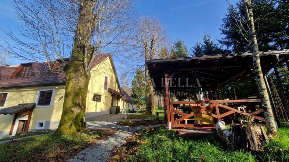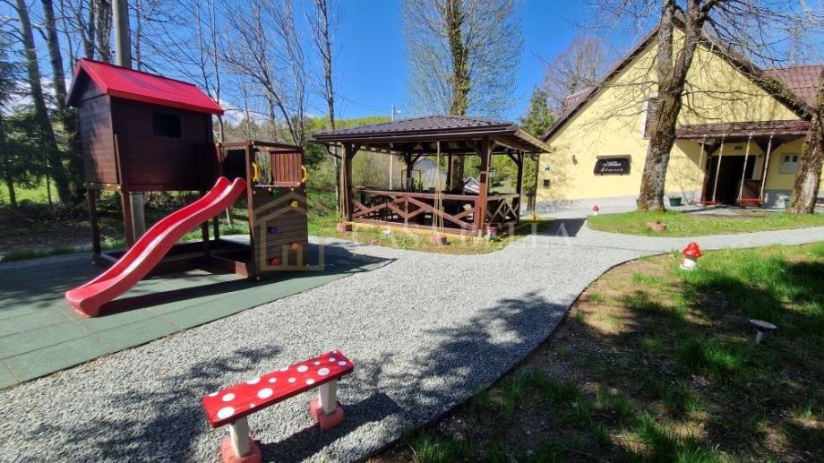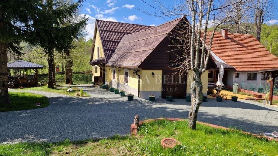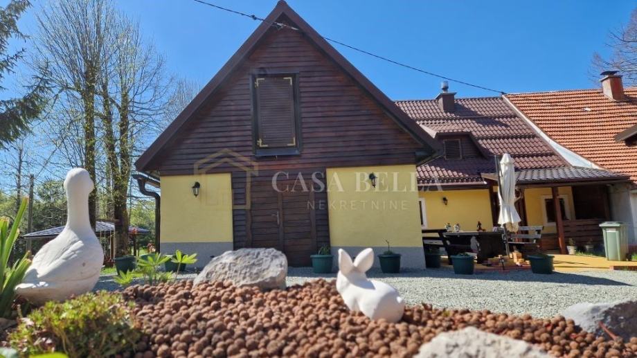 Nalazi se na imanju od otprilike 1000 m² u Općini Fužine. Na okućnici se ističu natkrivena terasa, otvorena terasa, prostor s roštiljem, bazen, šetnica, veliko dječje igralište, drvena brvnara za alat i drva te mini botanički vrt. Okućnica je potpuno uređena, čineći ovo mjesto idealnim za uživanje u mirnom životu na planinskom području .