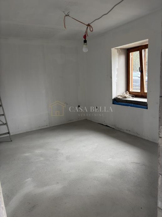 Unutrašnjost je u fazi započete adaptacije, pri čemu su izvedeni ključni radovi – postavljene su nove elektro i vodovodne instalacije, ugrađena nova drvena stolarija te izveden novi dimnjak. Prostor je ogoljen i pripremljen za završne radove, što budućem vlasniku omogućuje uređenje prema vlastitim željama bez potrebe za grubim zahvatima.