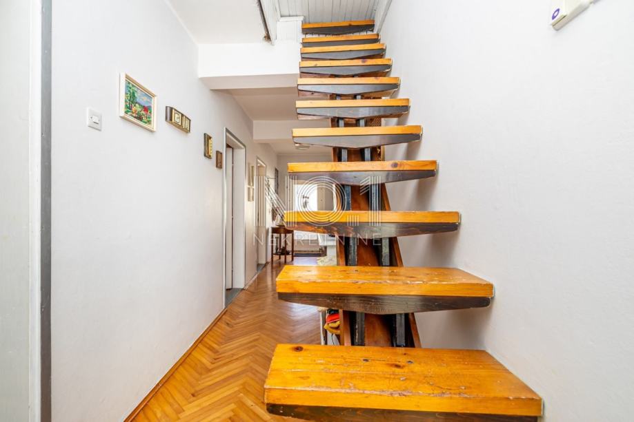 Unutarnje stepenice vode do tavanskog prostora koji nudi potencijal za daljnje uređenje, dok se ispod hodnika nalazi konoba koja bi mogla postati savršeno mjesto za opuštanje ili druženje. Grijanje je osigurano s tri peći na drva, što dodatno doprinosi toplini i udobnosti doma.