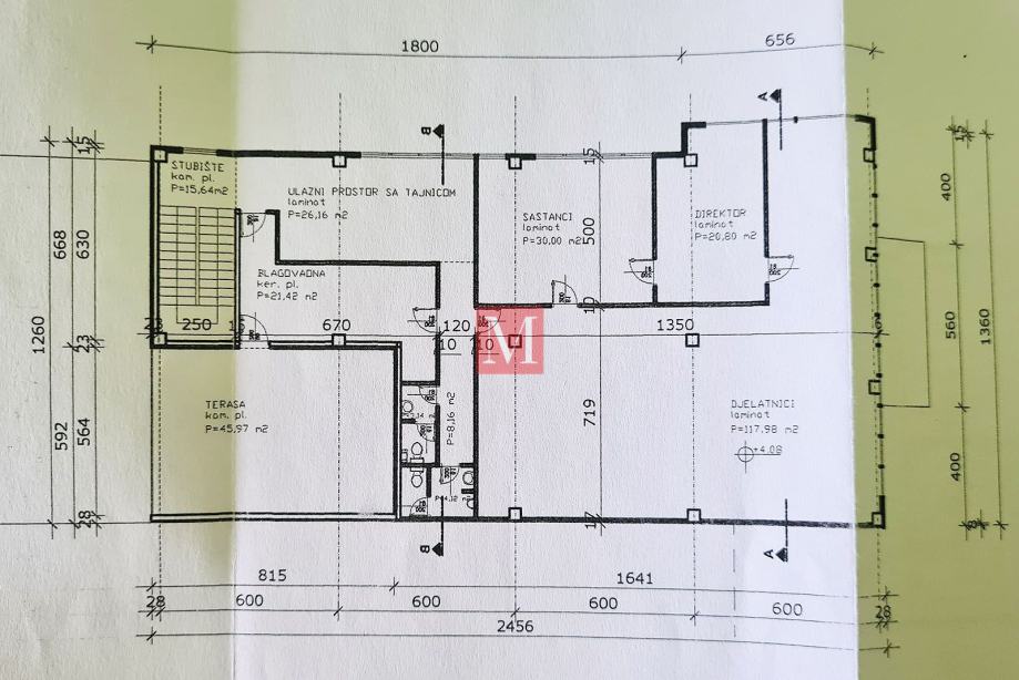 Prostor je južne orjentacije i sastoji se od velikog ulaznog dijela (recepcija / dodatni radni prostor), velike arhive, 2 velike uredske sobe, sobe za direktora, sobe za sastanke, kuhinje s blagovaonicom i kupaonice (M/Ž sanitarni čvor).
