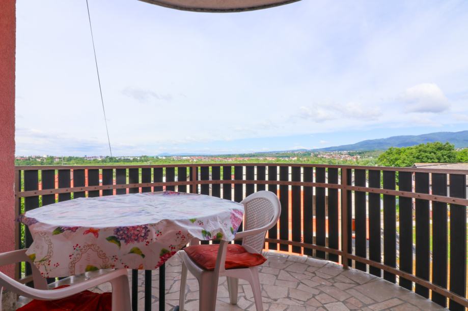 Stan se nalazi na drugom katu i u potpunosti je opremljen i namješten, s novom kuhinjom a sastoji se od ulaznog dijela, kupaonice, toaleta, 3 spavaće sobe od kojih svaka ima balkon, ostave, dnevnog boravka koji je spojen s blagovaonom i kuhinjom te terase.